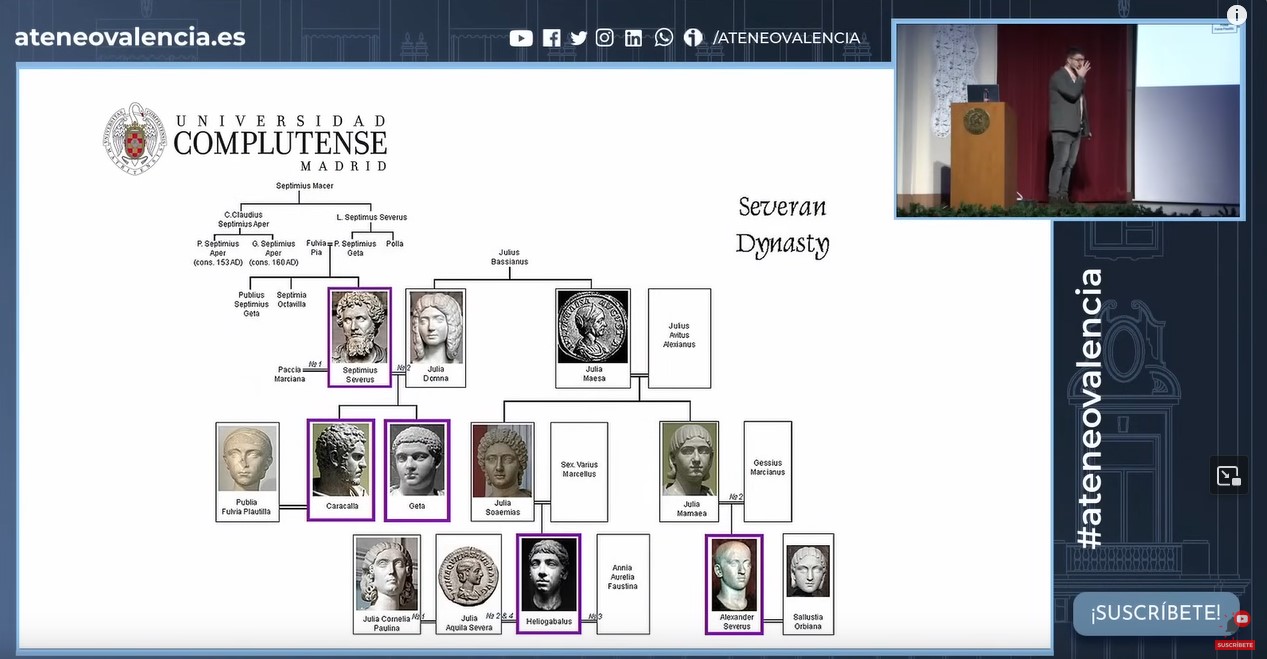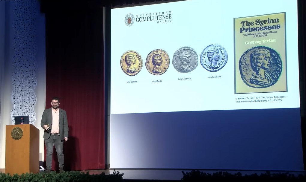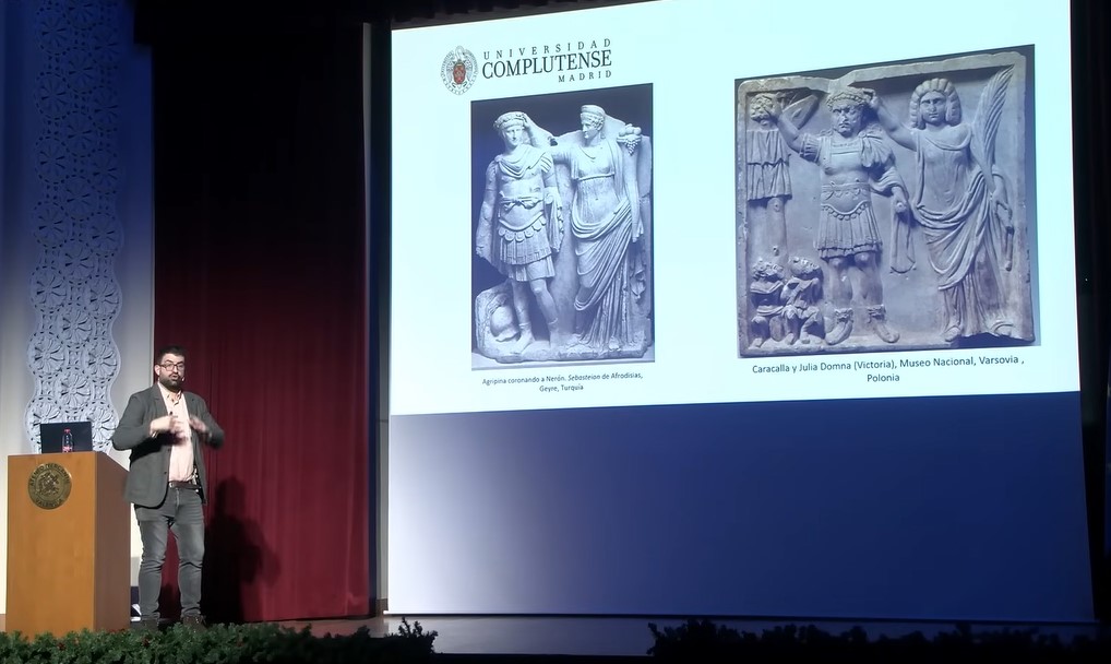 Para contextualizar la figura de Julia Domna, David Conesa abordó la dinastía Severiana, destacando su relevancia a finales del siglo II y principios del siglo III. Antes de adentrarse en la figura de Julia Domna, el profesor hizo un repaso sobre la situación de las mujeres en la antigua Roma, destacando cómo eran descritas por los autores clásicos y la distorsión que existe en sus representaciones.