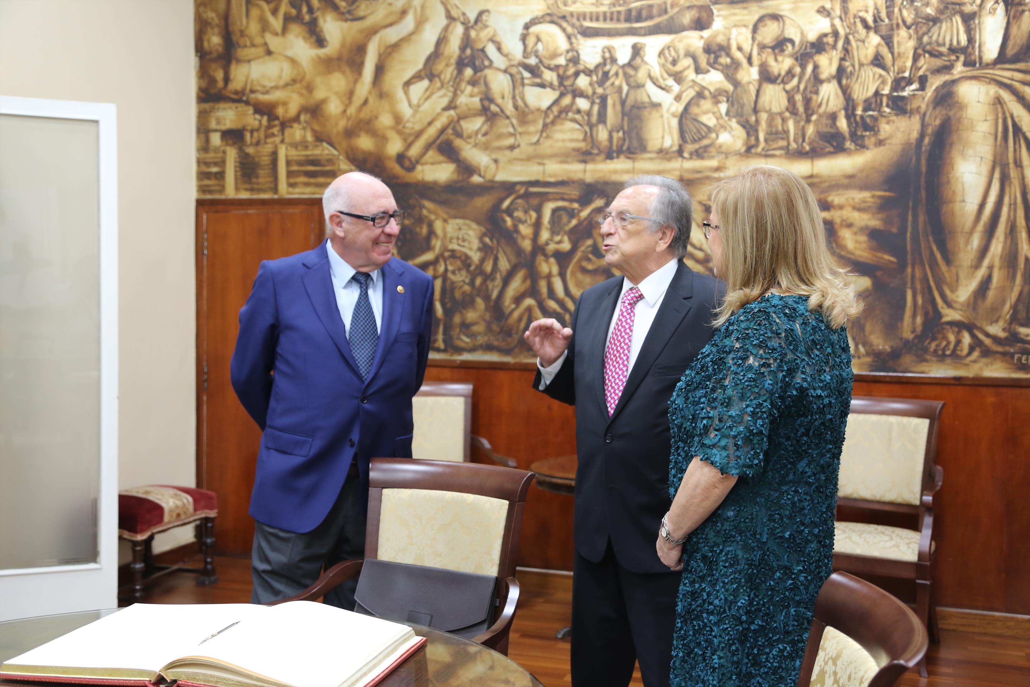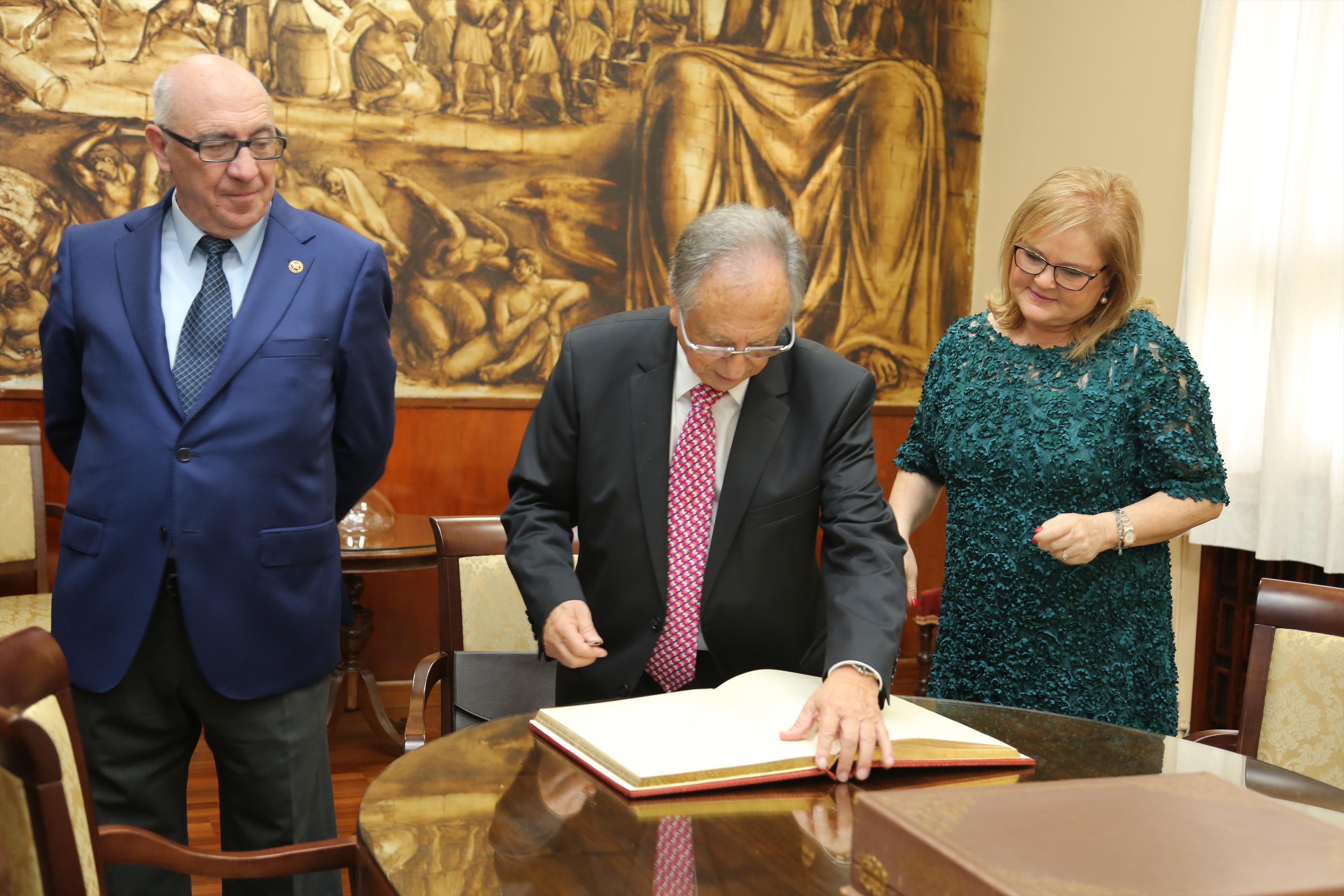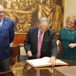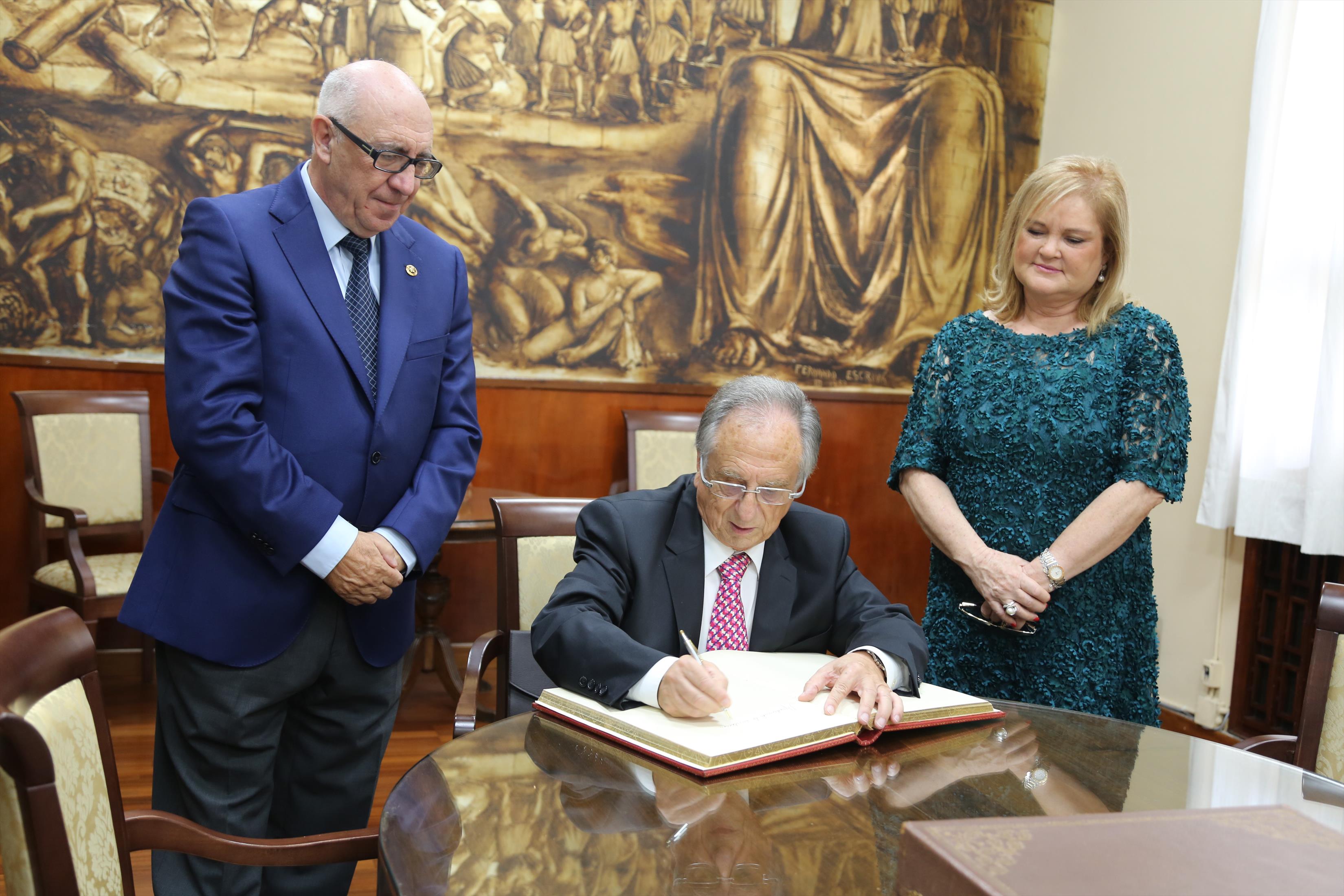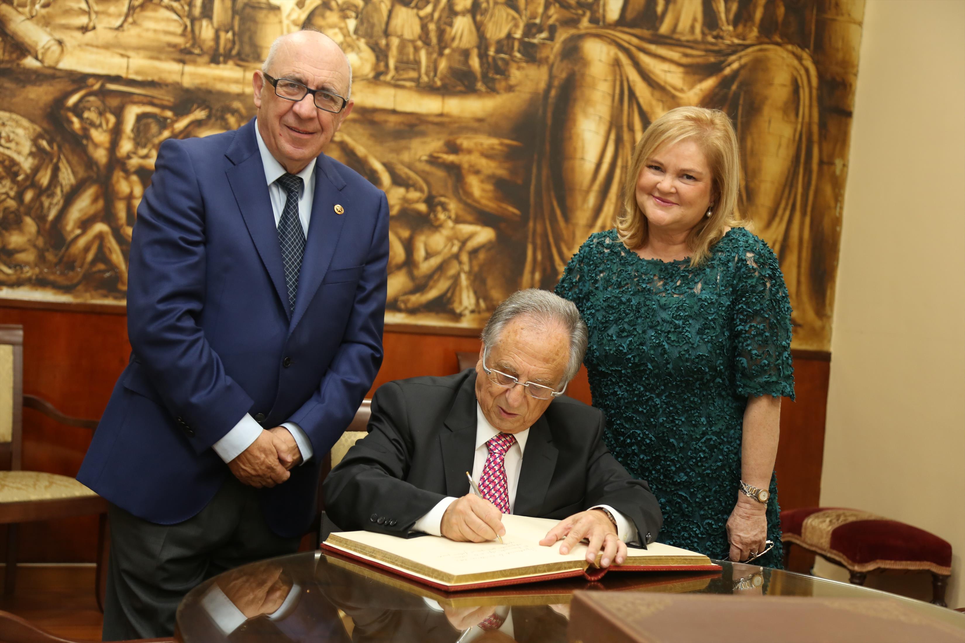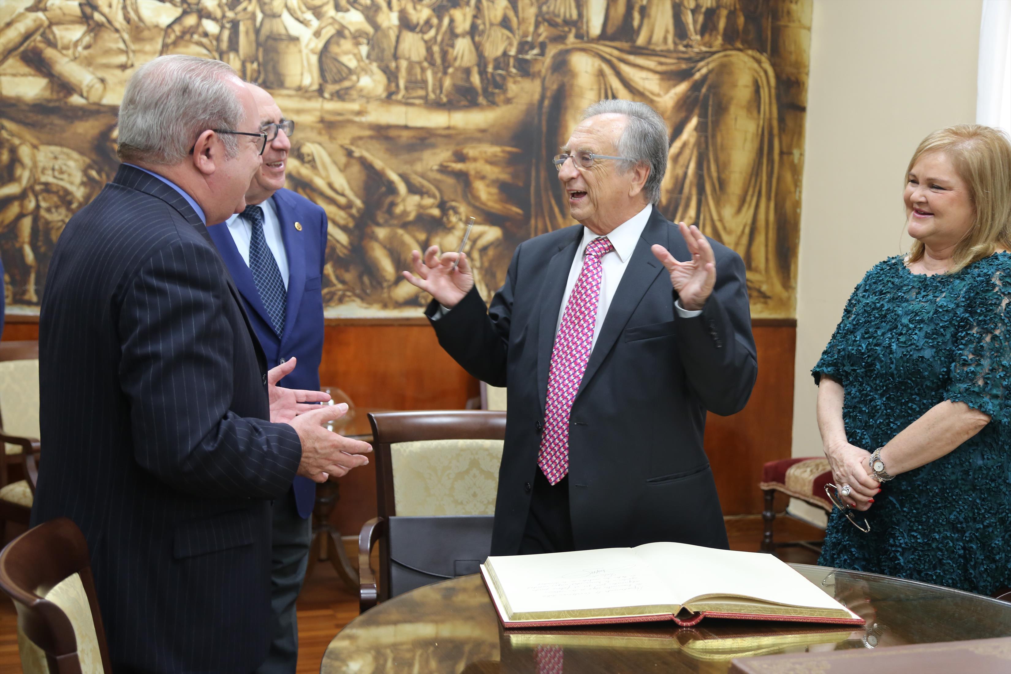 El Grupo Fuertes se ha convertido en un generador de riqueza social a través de los miles de empleos de un proyecto empresarial familiar que reinvierte su beneficio para seguir creciendo a lo largo de los 60 años de historia de la empresa. D. Tomás Fuertes es el primer empresario de Murcia y una de las mayores fortunas privadas según la Lista Forbes, se encuentra entre las 25 primeras de toda España, pero su humildad y sencillez quedó patente cuando compartió unos minutos antes de la conferencia con la presidenta del Ateneo Mercantil, Carmen de Rosa, y el Secretario General, Horacio Jiménez, ya que firmó en el Libro de Honor de la institución.
