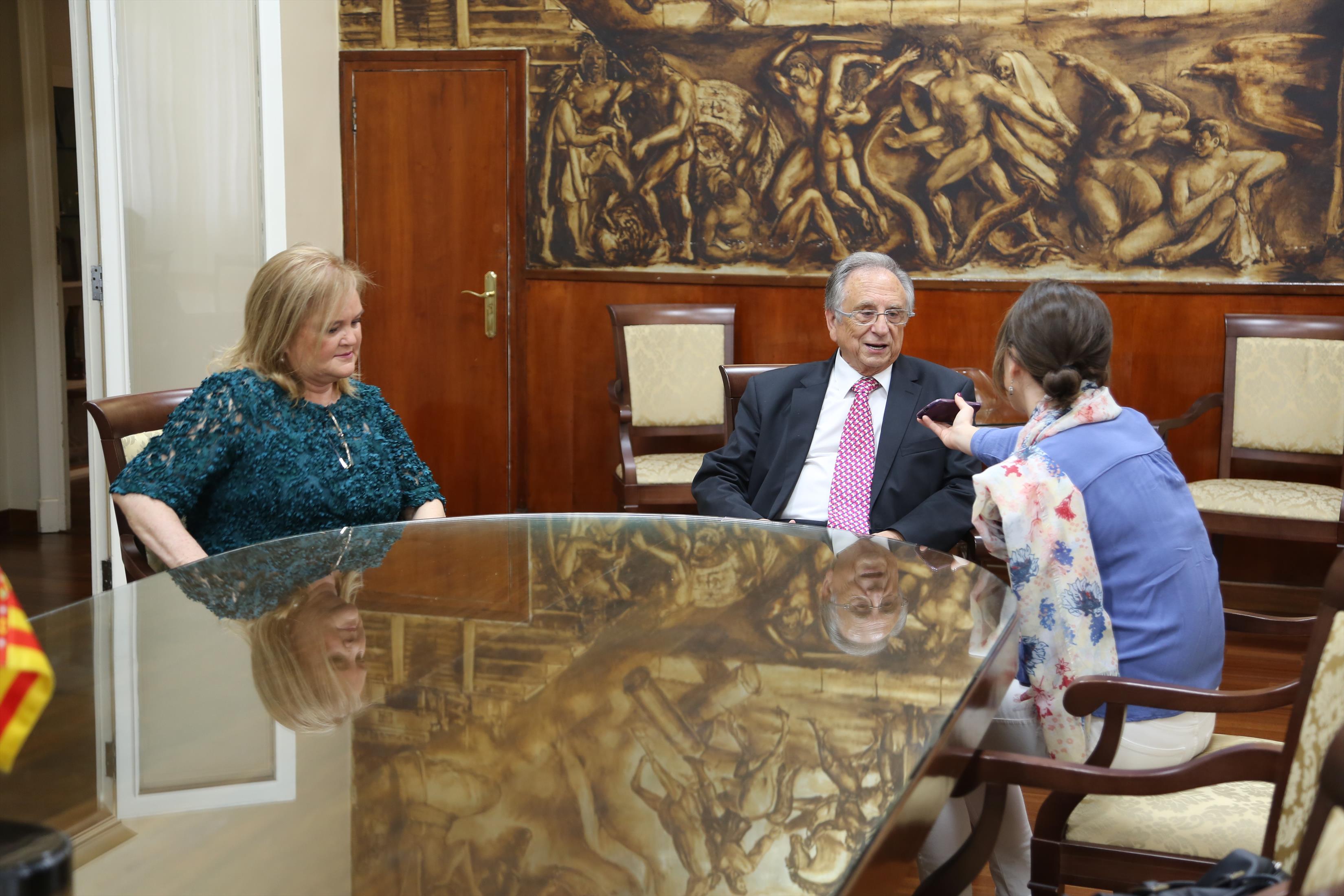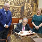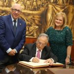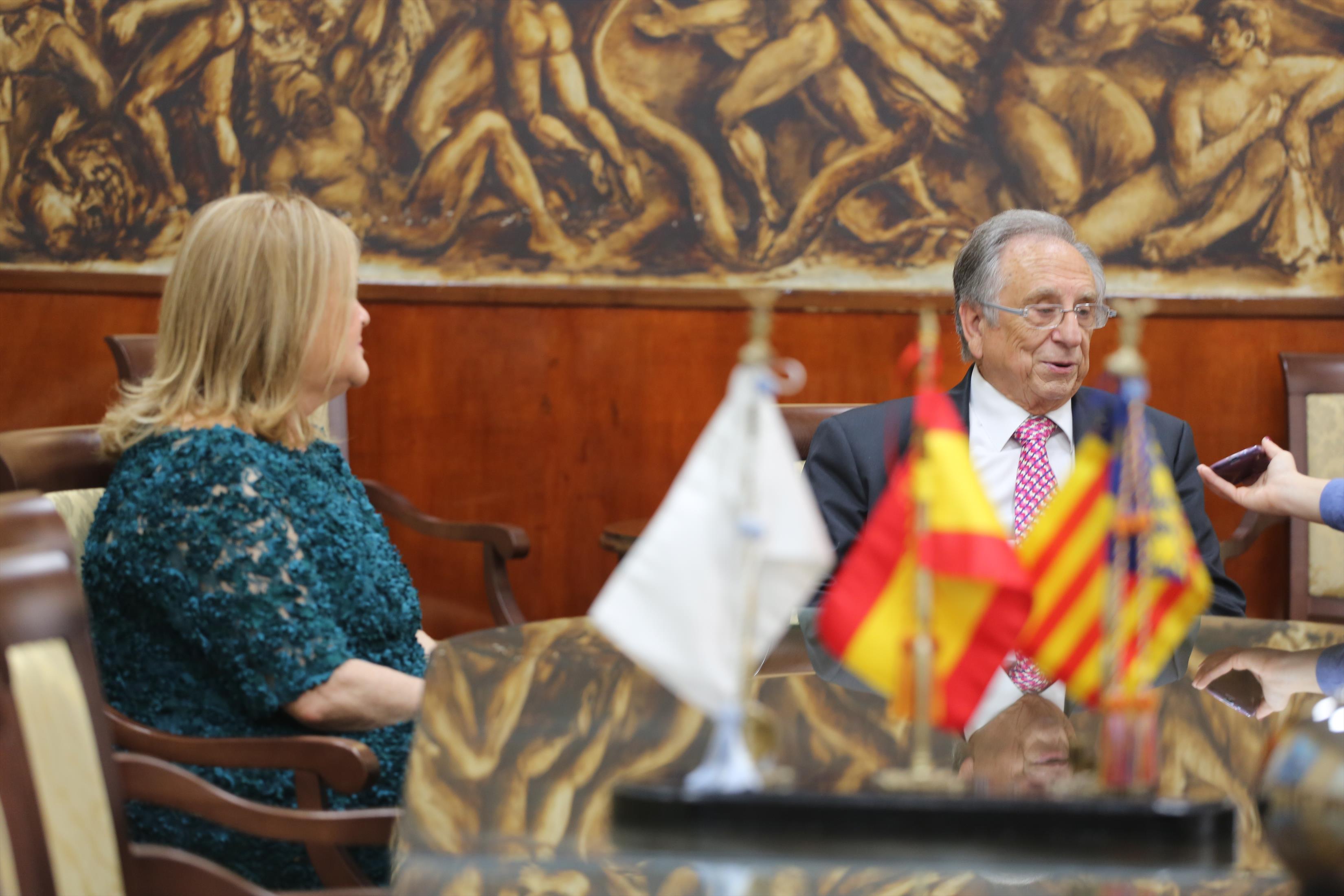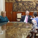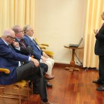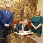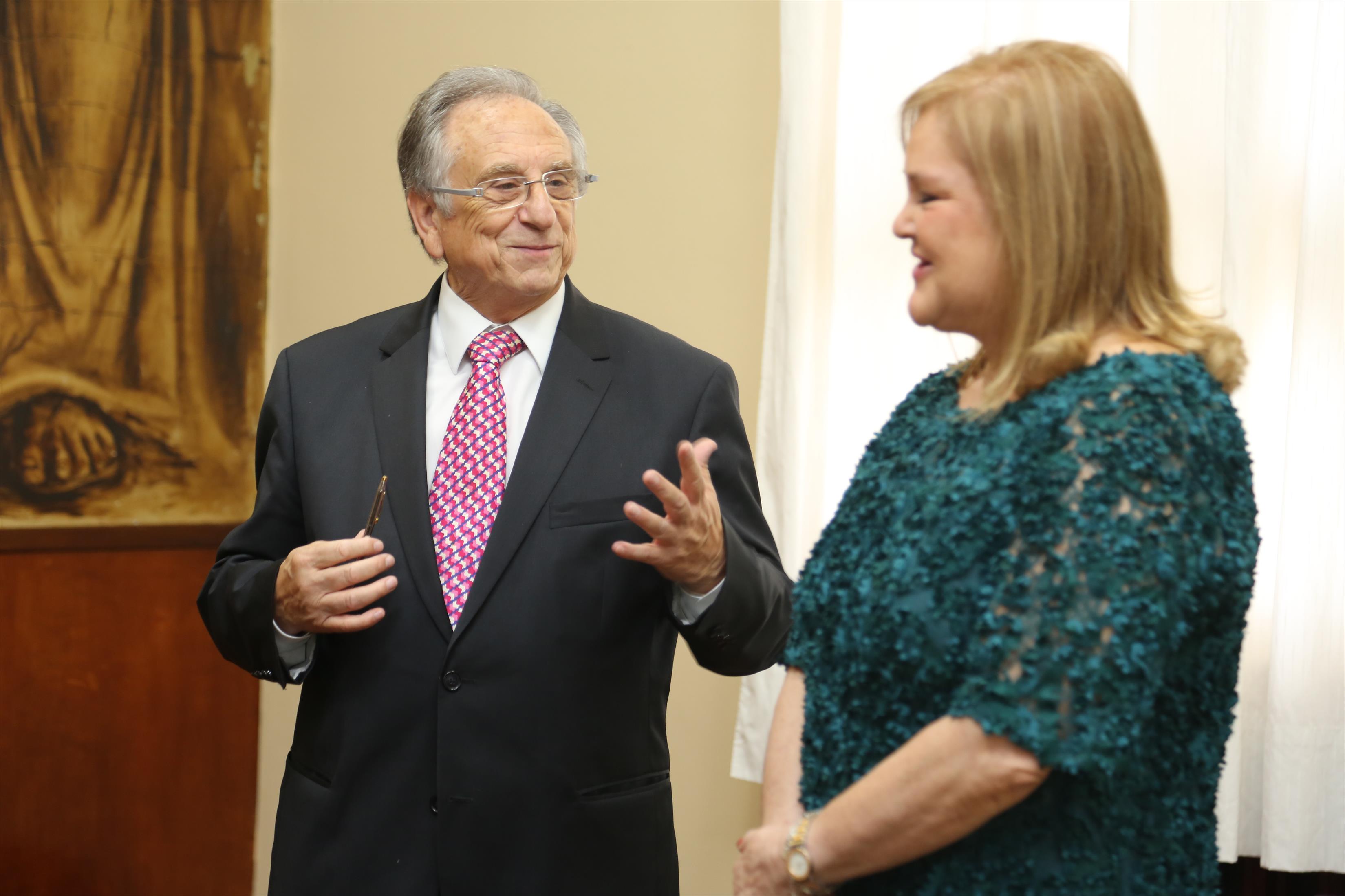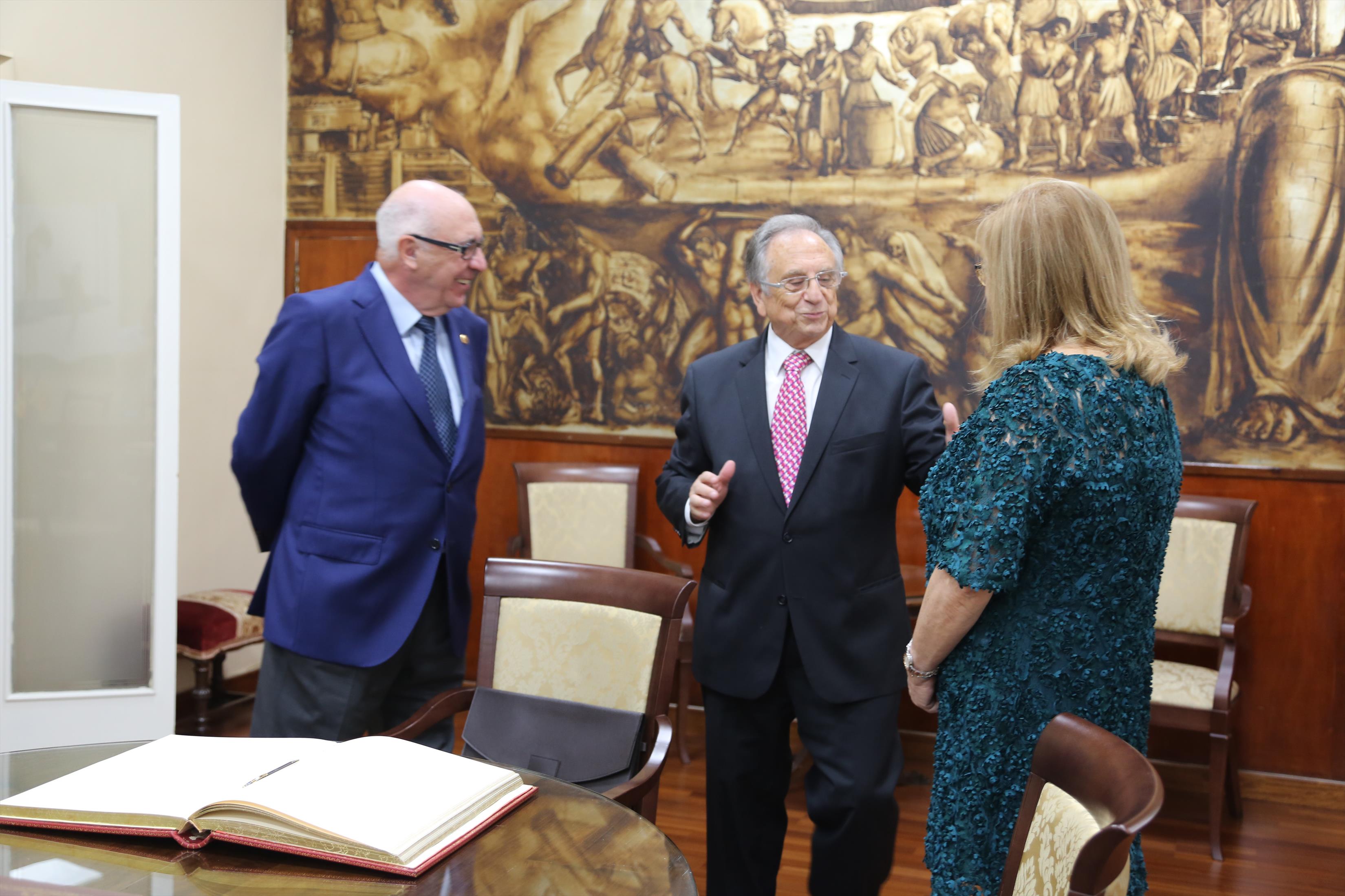 El Grupo Fuertes se ha convertido en un generador de riqueza social a través de los miles de empleos de un proyecto empresarial familiar que reinvierte su beneficio para seguir creciendo a lo largo de los 60 años de historia de la empresa. D. Tomás Fuertes es el primer empresario de Murcia y una de las mayores fortunas privadas según la Lista Forbes, se encuentra entre las 25 primeras de toda España, pero su humildad y sencillez quedó patente cuando compartió unos minutos antes de la conferencia con la presidenta del Ateneo Mercantil, Carmen de Rosa, y el Secretario General, Horacio Jiménez, ya que firmó en el Libro de Honor de la institución.