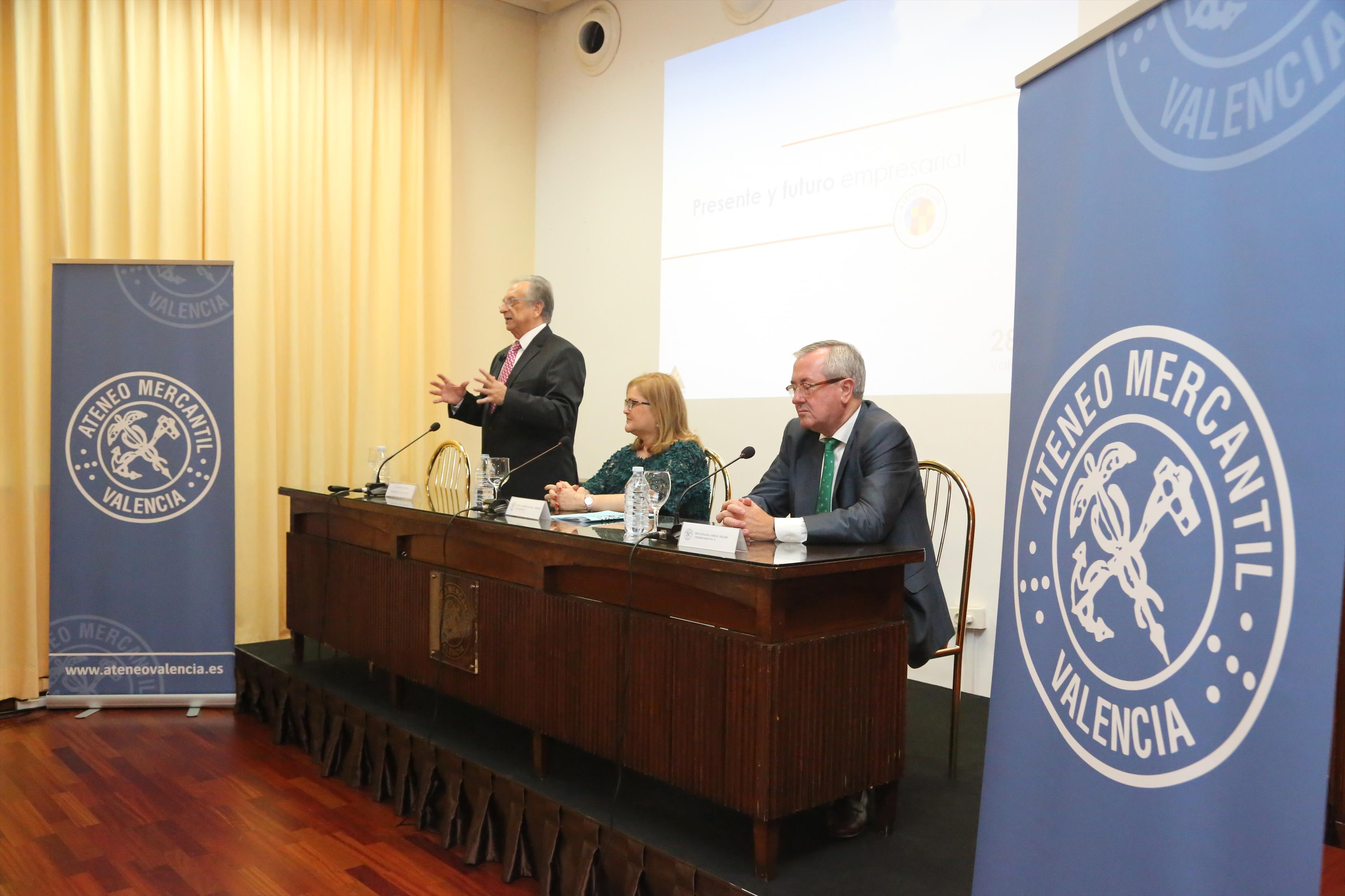 El Presidente del Grupo Corporativo Fuertes y de ElPozo Alimentación, D. Tomás Fuertes Fernández, ha compartido en el Ateneo Mercantil de Valencia una jornada en la que ha impartido una conferencia sobre 'el presente y el futuro empresarial' y ha compartido sus experiencias empresariales con el centenar de jóvenes empresarios, emprendedores y con los miembros del Ateneo Club de Innovación y Empresa.