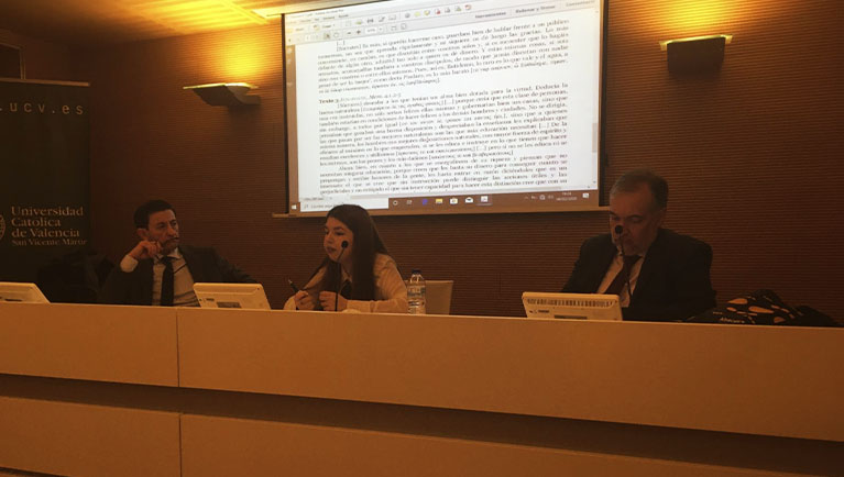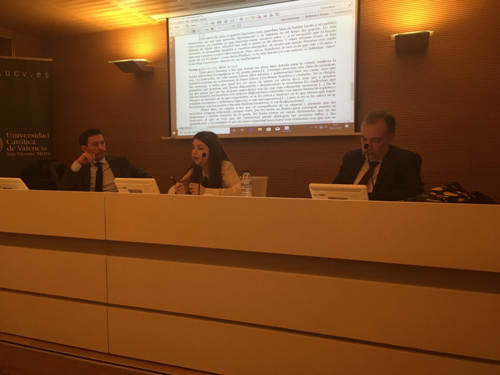 La quinta edición de Filópolis fue inaugurada con la ponencia “El silencio en los diálogos platónicos”, impartida por la doctoranda Alba Marín Garzón (Universitat de València). La conferencia, que tuvo lugar en la Sede de San Juan y San Vicente de la Universidad Católica de Valencia, comenzó recordando el reciente fallecimiento del profesor George Steiner.