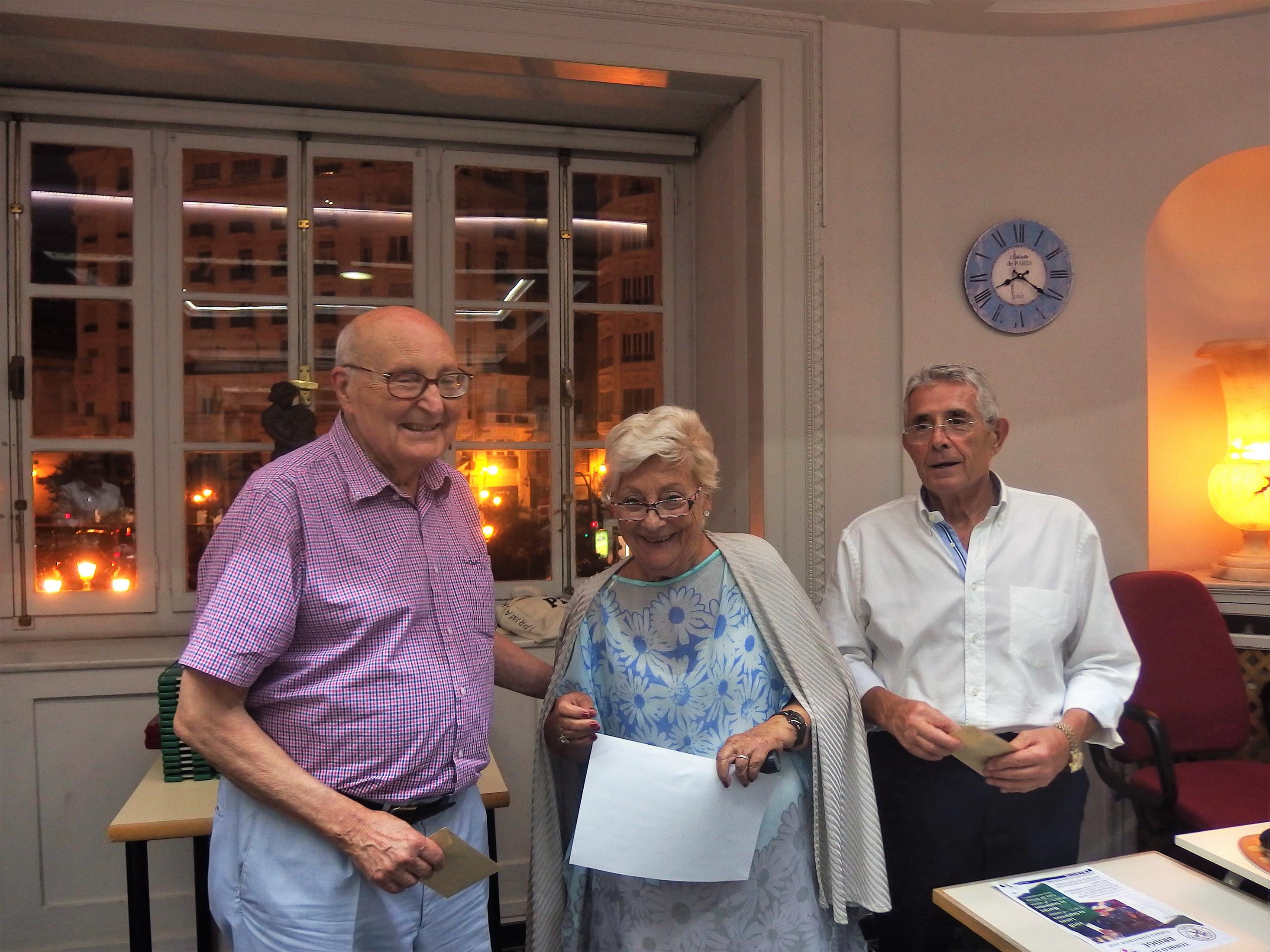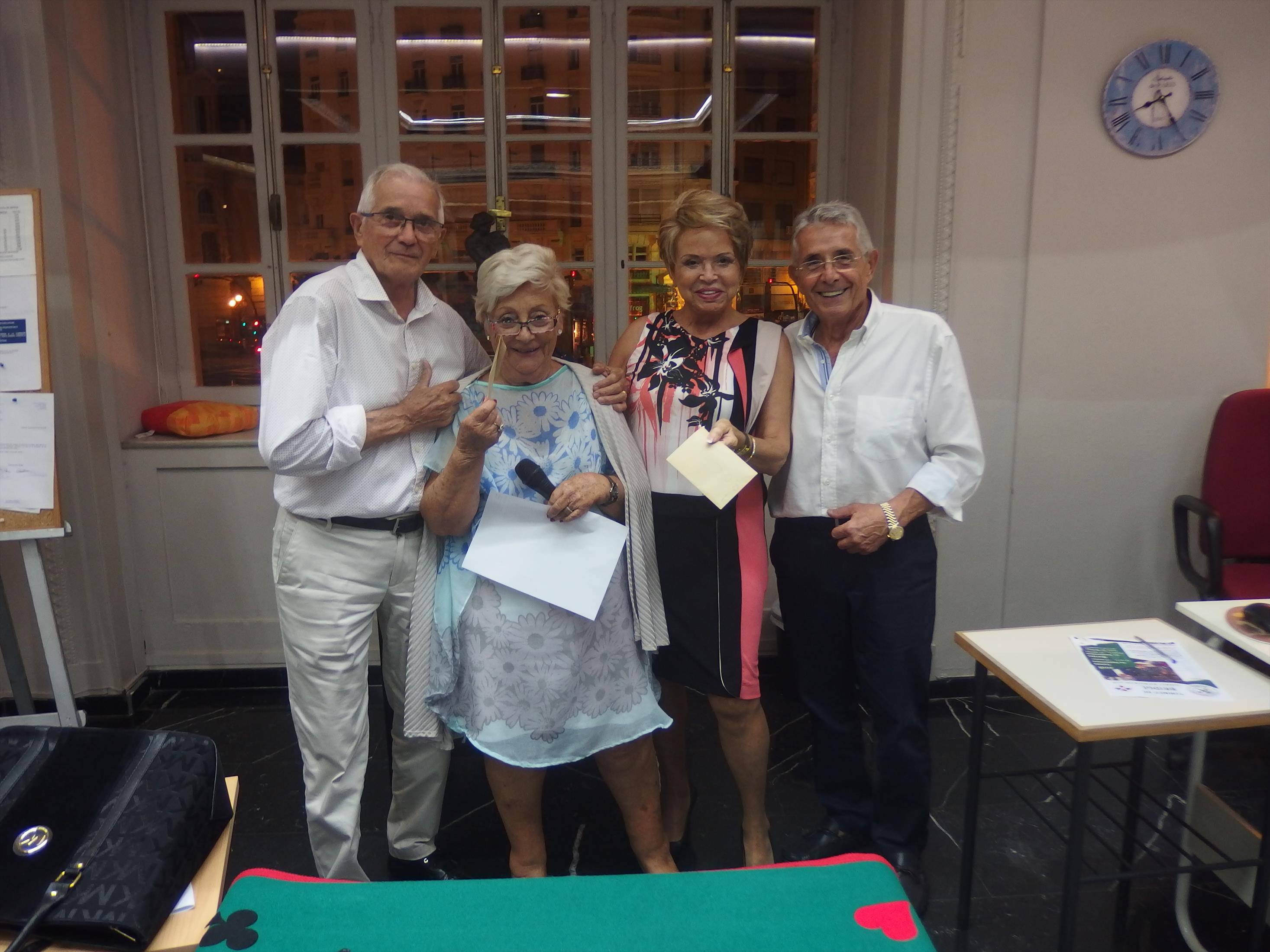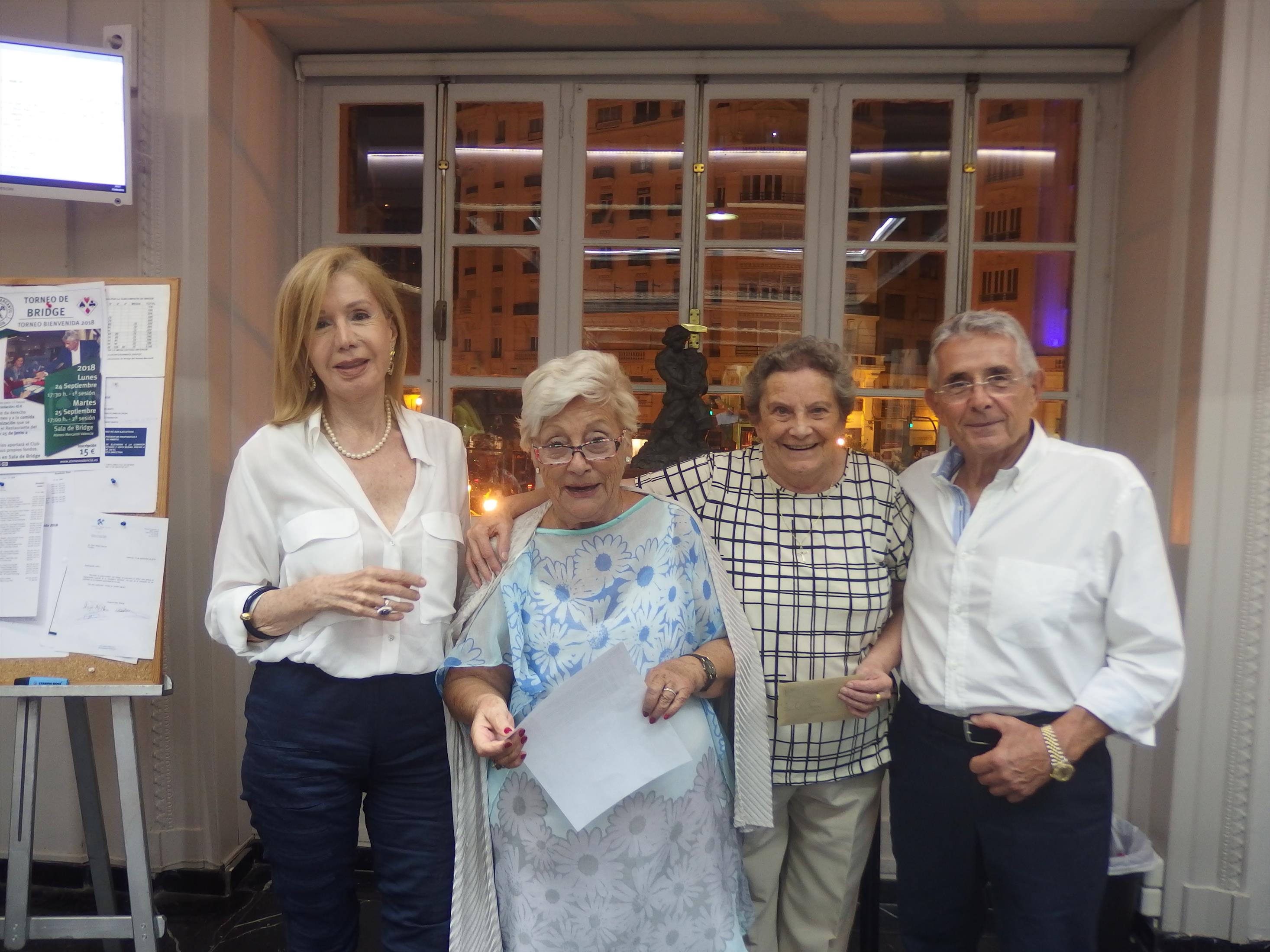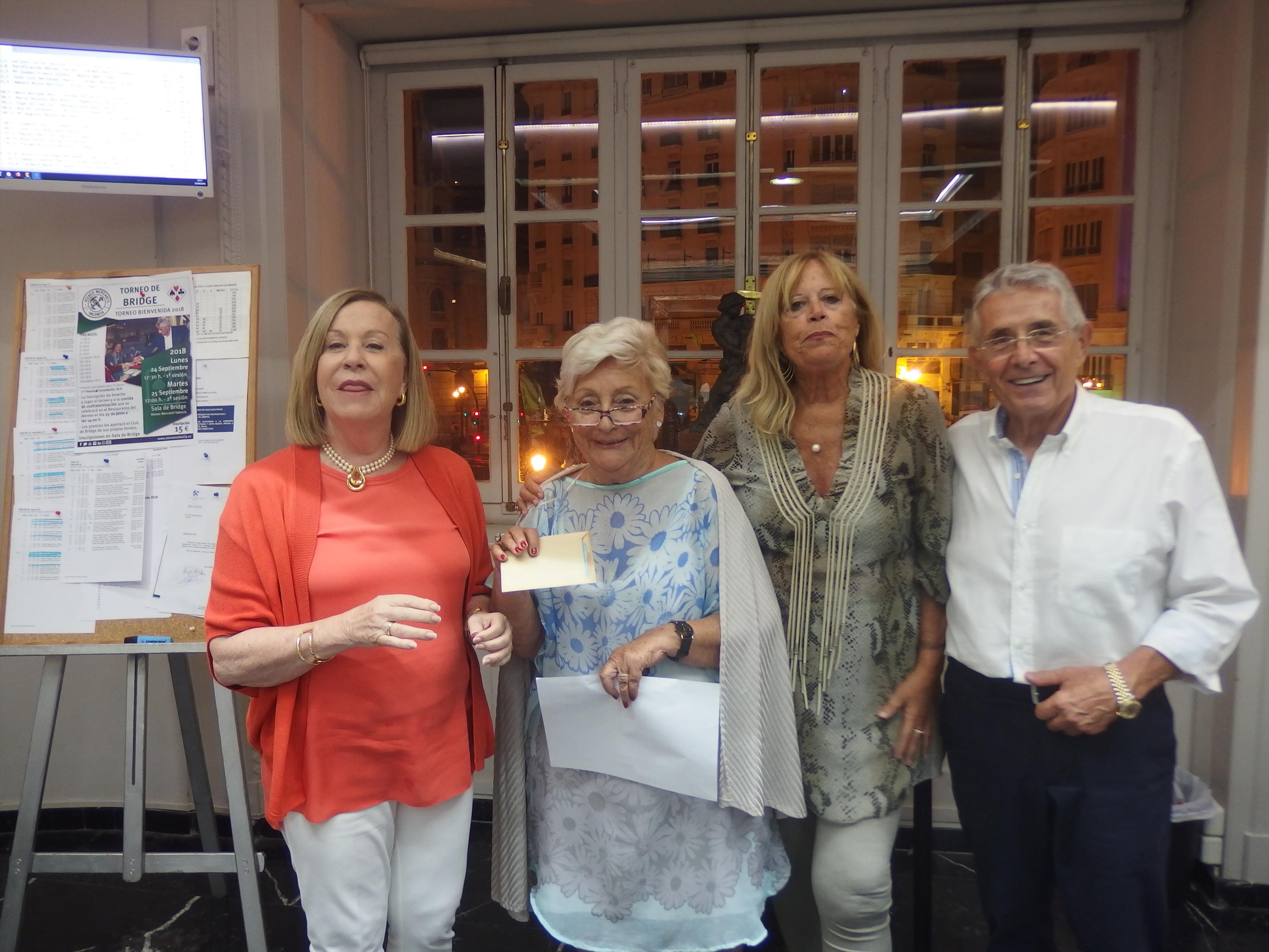 El 'Torneo de Bienvenida' del Bridge del Ateneo Mercantil de Valencia, que se ha disputado los días 24 y 25 de septiembre, llegó a su fin y este martes se repartieron los premios que acreditan a las parejas vendedoras y a las participantes, con un total de 16 mesas y de 32 parejas en juego.
