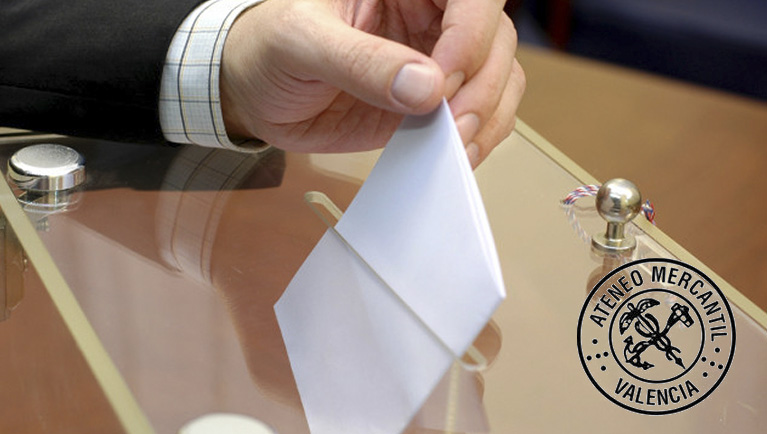 La Junta Directiva del Ateneo Mercantil de Valencia, en sesión extraordinaria celebrada el día 2 de Febrero de 2017, acordó, por unanimidad, convocar la Jornada Electoral para la renovación parcial reglamentaria de la Junta Directiva, el lunes, día 27 de Febrero de 2017, en el Salón Noble de la sede social, desde las 9 horas hasta las 21 horas.