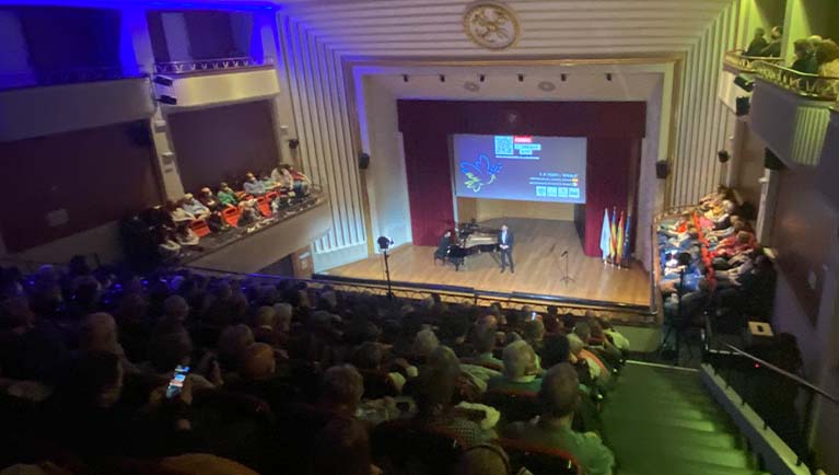 La sociedad valenciana ha respondido como se esperaba a la llamada solidaria convocada por la Fundación Eutherpe, de la mano del Ateneo Mercantil y Amics de l´Òpera i de Les Arts de la Comunitat Valenciana (AOA), y ha llenado el auditorio del Ateneo con capacidad para 500 personas. El Teatro Ateneo ha acogido este domingo por la tarde un ‘Concierto por Ucrania’ compuesto por músicos rusos y ucranianos, que han unido sus voces en un concierto benéfico para denunciar la invasión de Ucrania, un país que quiere vivir en democracia. “Con la música y el arte promovemos la paz”, ha dicho uno de los artistas de origen ruso antes de comenzar el concierto.