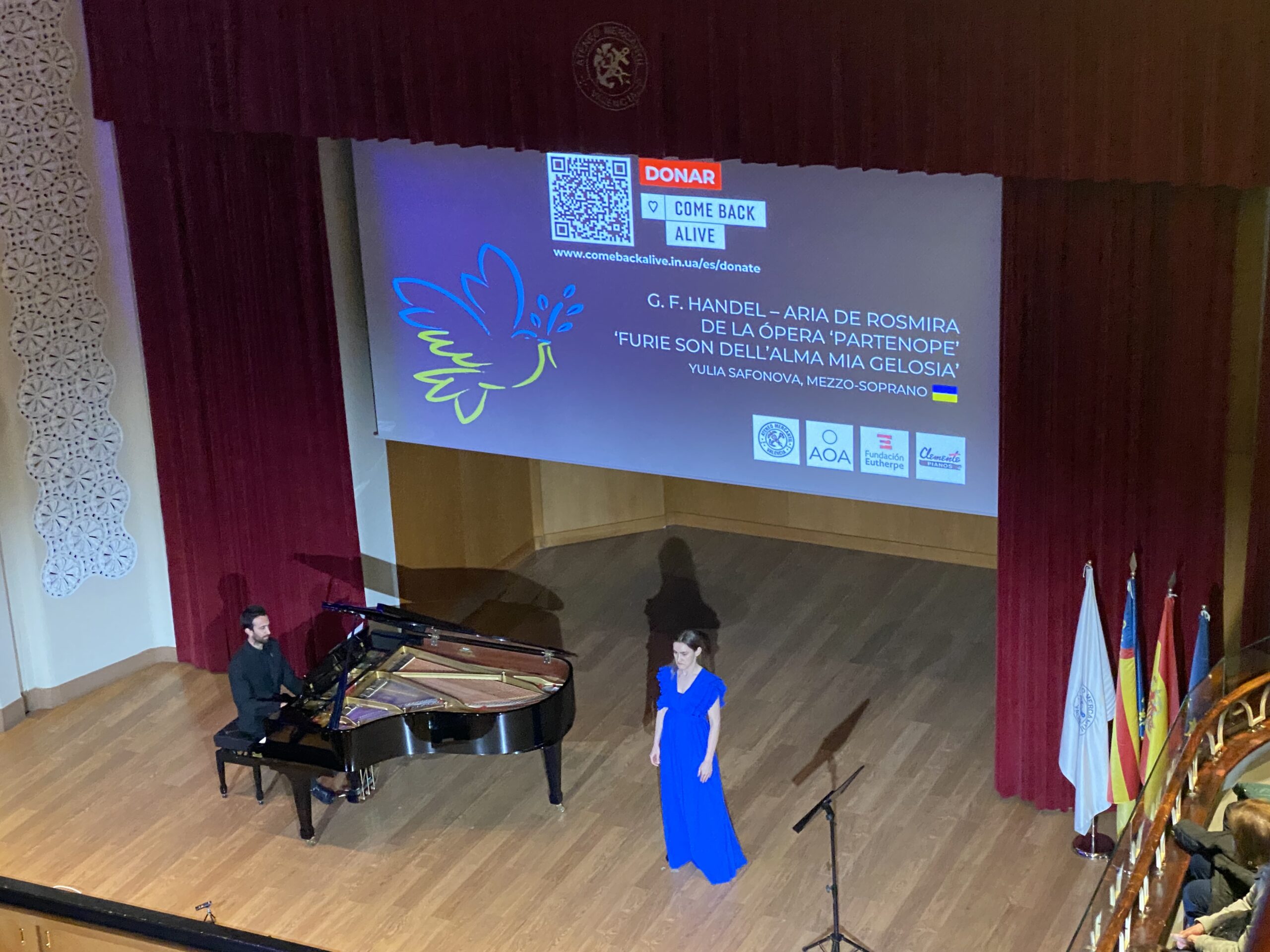 La soprano ucraniana Olha Viytiv se ha llevado buena parte de los aplausos de un público entregado que se ha puesto en pie para aplaudir el talento y esta iniciativa por la paz encabezada por un gran elenco de instrumentalistas y cantantes. El concierto corrió a cargo de los intérpretes Yulia Safonova (mezzo-soprano, Ucrania), Irina Lévian Avramenko, (soprano y pianista, Ucrania) ―ambas exalumnas del Centre de Perfeccionament del Palau de les Arts―, Maria Yudina (soprano, Rusia), Mikhail Spivak, (violinista de la Orquestra de la Comunitat Valenciana, Rusia), Héctor Ángel García Blasco (tenor, España), Gemma Soler (soprano, España), Alberto Ballesta Giménez (tenor, España) y Alessandro Di Marco (pianista, Italia). Los artistas rusos como Maria Yudina e Ivan Goroshilov, entre otros, no dudaron en dar la cara para mostrar al mundo su repulsa por la invasión llevada a cabo por Putin.