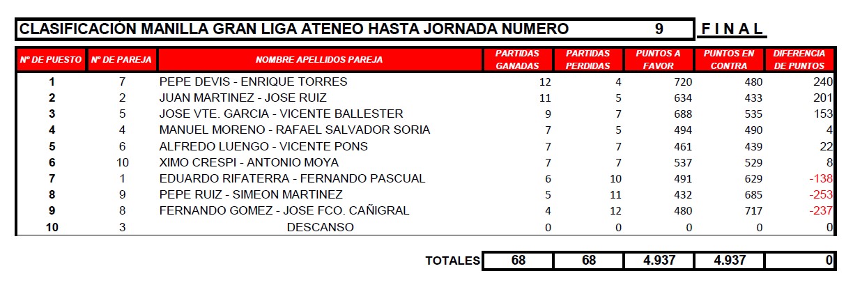 El pasado 31 de mayo se realizó la entrega de Trofeos de las Liguillas y Campeonatos de Manilla, Mus y Dominó en el Ateneo Mercantil de Valencia y contó con al presencia de la presidenta del Ateneo, Carmen de Rosa, y del secretario genaral, Horacio Jiménez Calisalvo. Enhorabuena a todas las parejas afortunadas y por