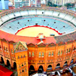 Plaza de toros Monumental de Barcelona. Bien de Interés Local, su inauguración data del 27 de Febrero de 1916, coso de 1ª Categoría y con un aforo de 19.582 localidades, cuyos propietarios son la Familia Balañá. Es un edificio de estilo neomudéjar y bizantino. La última corrida de toros se celebró el 25 de Septiembre de 2011, tras la prohibición por el Parlamento de Cataluña el 28 de Julio de 2010, dicho parlamento voto la abolición de las corridas de toros en toda Cataluña. El día 20 de octubre de 2016 el Tribunal Constitucional dictó sentencia en contra de esta abolición. En esta plaza de toros han toreado las máximas figuras del toreo, sólo recordaremos una corrida histórica con la intervención de Juan Mora, José Tomás y Serafín Marín. Chapa, nos invita a conocer todo lo concerniente en materia de toros en Cataluña a Corridas de toros en la colección de la Biblioteca de Cataluña.