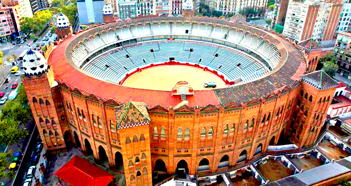 Plaza de toros Monumental de Barcelona. Bien de Interés Local, su inauguración data del 27 de Febrero de 1916, coso de 1ª Categoría y con un aforo de 19.582 localidades, cuyos propietarios son la Familia Balañá. Es un edificio de estilo neomudéjar y bizantino. La última corrida de toros se celebró el 25 de Septiembre de 2011, tras la prohibición por el Parlamento de Cataluña el 28 de Julio de 2010, dicho parlamento voto la abolición de las corridas de toros en toda Cataluña. El día 20 de octubre de 2016 el Tribunal Constitucional dictó sentencia en contra de esta abolición. En esta plaza de toros han toreado las máximas figuras del toreo, sólo recordaremos una corrida histórica con la intervención de Juan Mora, José Tomás y Serafín Marín. Chapa, nos invita a conocer todo lo concerniente en materia de toros en Cataluña a Corridas de toros en la colección de la Biblioteca de Cataluña.