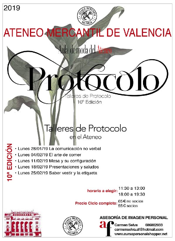 Décima edición de los Talleres de Protocolo del Aula de Moda del Ateneo que organiza la Asesoría de Imagen Personal de Carmen Selva.