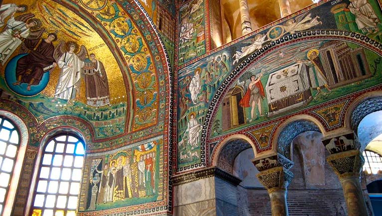 Las iglesias bizantinas de Constantinopla han sido mutiladas y blanqueadas por los turcos, y de muchas de ellas se hace difícil apreciar su belleza, faltándoles, además de la decoración de mosaicos, los ornamentos litúrgicos que las enriquecían; en cambio, en Ravena, la ciudad italiana a orillas del Adriático, que fue capital del Exarcado, se conservan casi intactas inapreciables joyas del arte bizantino. Ravena fue durante tres siglos como un barrio de Constantinopla.