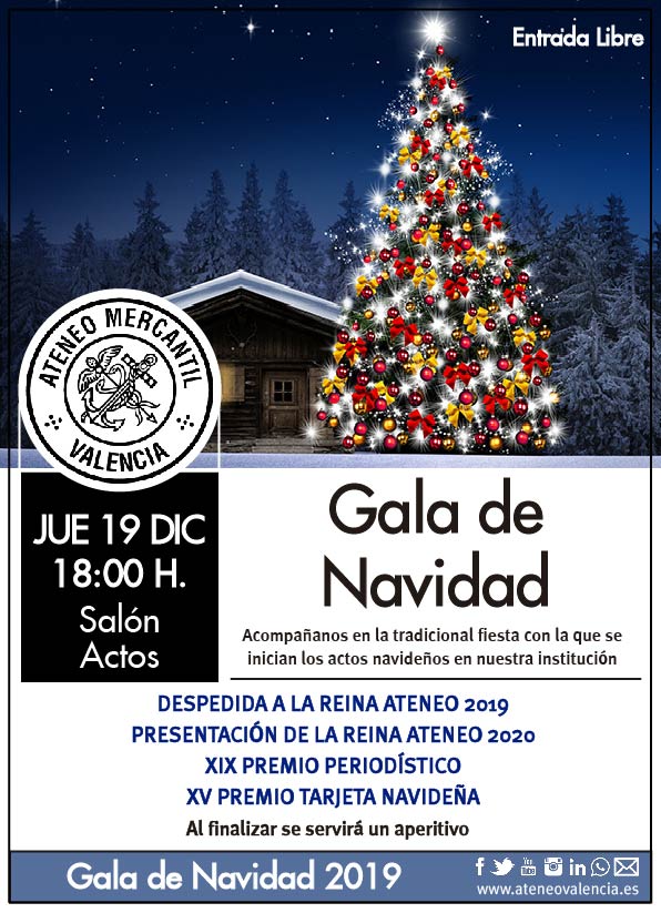 Además, en la gala se dará a conocer la futura Reina del Ateneo de 2020 y podremos despedir a Silvia Giménez Santamarina, que tan bien nos representó esta año. En estas semanas se acercan las entrañables fiestas de la Navidad y el Salón de Actos se viste con las mejores galas para recibir a nuestros socios y dar el pistoletazo de salida a todos los actos programados por nuestra institución estas fechas.