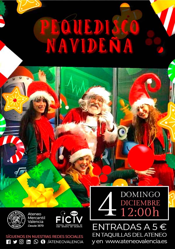 El Ateneo Mercantil de Valencia junto con FICIV (Festival Internacional de Cine Infantil de Valencia) están organizando desade el pasado mes de noviembre y hasta estas Navidades una serie de espectáculos infantiles para los domingos a las 12:00 h. En esta ocasión, el domingo 4 de diciembre en el Teatro Ateneo podremos disfrutar de una gran mañana de disfraces y mucha música para bailar.
