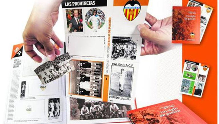 El libro, que Las Provincias entregará el próximo domingo 16 de septiembre de forma gratuita junto a la primera lámina con las pegatinas adhesivas, tiene un enorme impacto visual con sus más de 500 imágenes. Un ejemplar que se completará como si fuera un álbum de cromos tradicional y que semana tras semana llenará de imágenes para el recuerdo las 152 páginas de puro valencianismo que integran el libro sobre el centenario del Valencia CF. La entrega de las láminas con las pegatinas se realizará de martes a viernes encartadas de manera gratuita en el ejemplar del diario Las Provincias y habrá un total de 60 entregas hasta completar la colección el viernes 28 de diciembre, cuando se dará la última lámina.