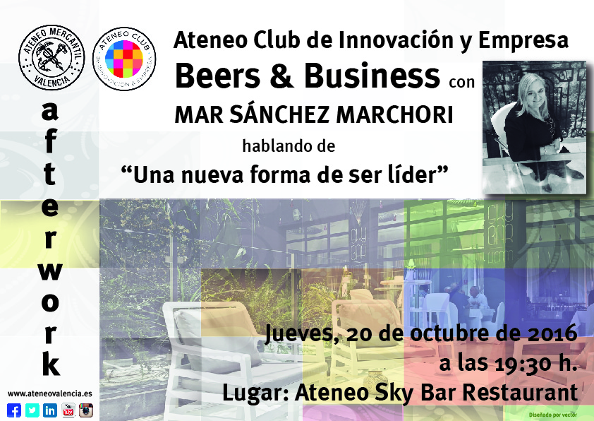Vuelve el afterwork al Ateneo, dentro del programa Beer & Business del Ateneo Club de Innovación y Empresa. Esta vez contaremos con la presencia Mar Sánchez Marchori que nos hablará de "Una nueva forma de ser líder".