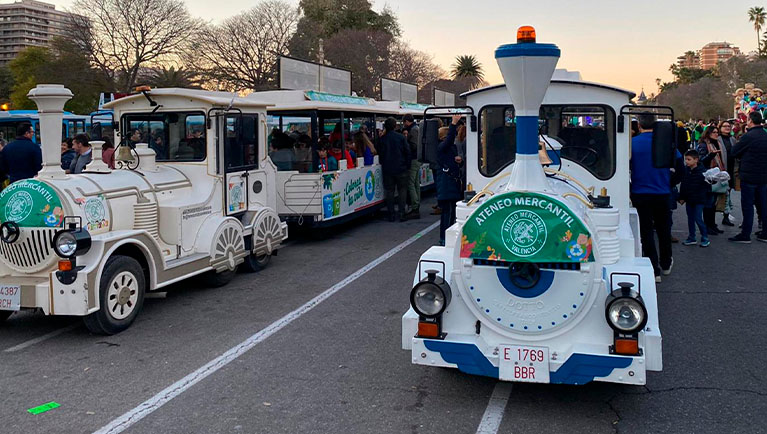 Este año, el Ateneo contará con un tren decorado que llevará a los más pequeños en un paseo inolvidable junto a Sus Majestades los Reyes Magos de Oriente. Durante el recorrido, los niños repartirán cerca de 500 kilos de caramelos y 50 kilos de golosinas entre el público, llevando alegría a las calles de Valencia.