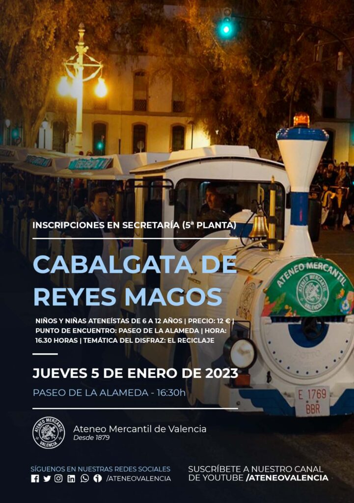 El Ateneo Mercantil de Valencia participa en cabalgata de los Reyes Magos de Oriente con dos trenecitos decorados al efecto, que transportaran a niños y niñas ateneístas. Durante el recorrido, nuestros pequeños, repartieran cerca de 400 kilos de caramelos, y 20 kilos de golosinas.