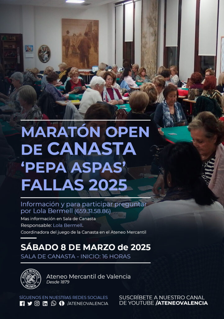 El Ateneo Mercantil de Valencia se complace en anunciar una nueva edición del tradicional Campeonato Open de Canasta 'Pepa Aspas', que se celebrará en el marco de las Fiestas de Fallas 2025.
