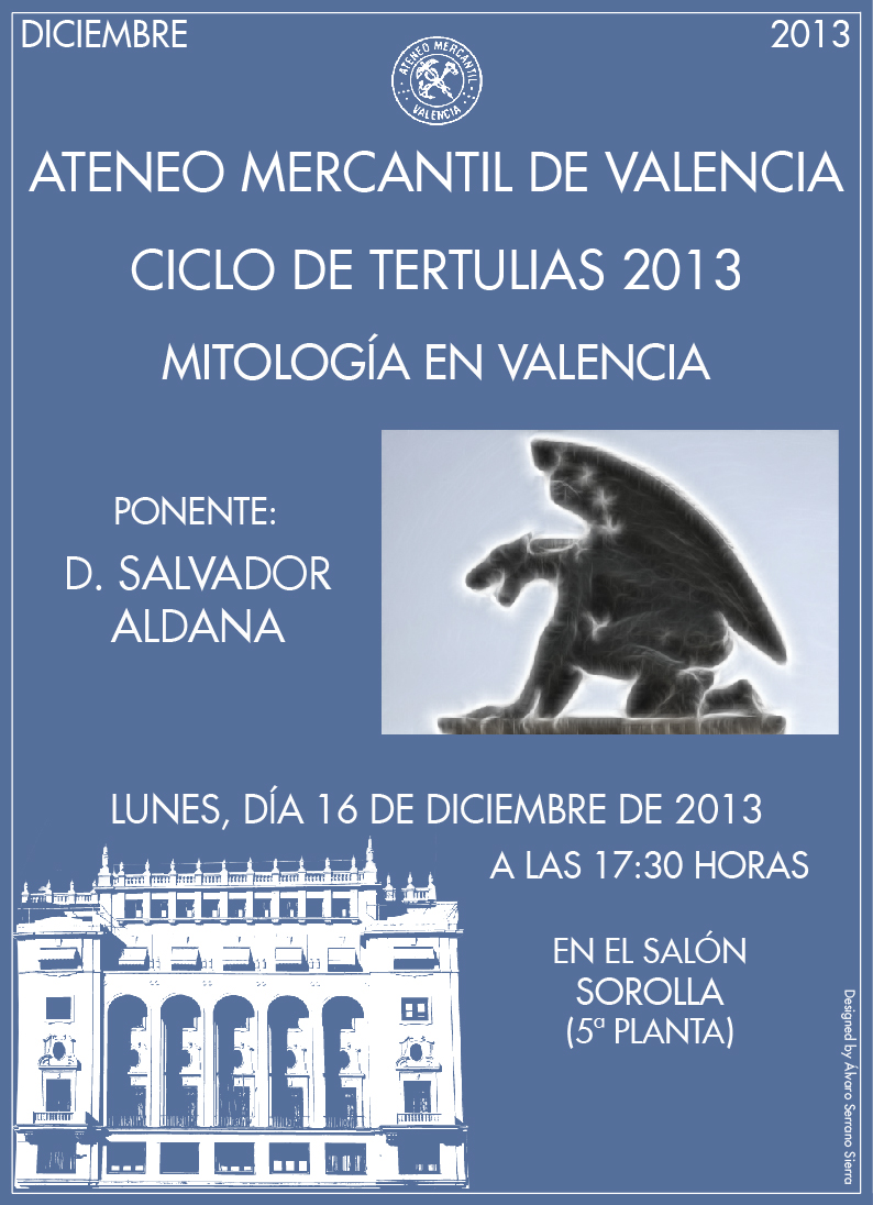Conferencia ‘Mitología en Valencia’ a cargo de Salvador Aldana. Lunes 16 de Diciembre a las 17.30h en el Salón Sorolla.