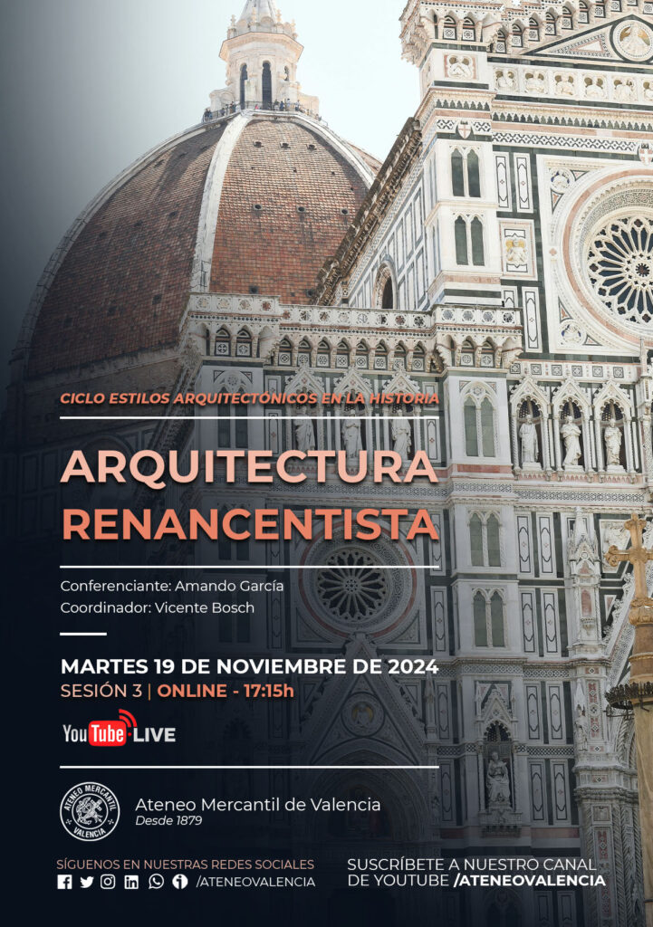 Un nuevo ciclo sobre arte llega al Ateneo Mercantil de Valencia de la mano de D. Amando García. En esta ocasión nos desgranará la evolución de la arquitectura a lo largo de los siglos. En la tercera sesión nos hablará sobre Arquitectura Renacentista. Los resultados de este periodo son claramente visibles en bellas edificaciones por toda Europa. Suelen ser construcciones muy novedosas, complejas y emplean técnicas nunca vistas hasta el momento.