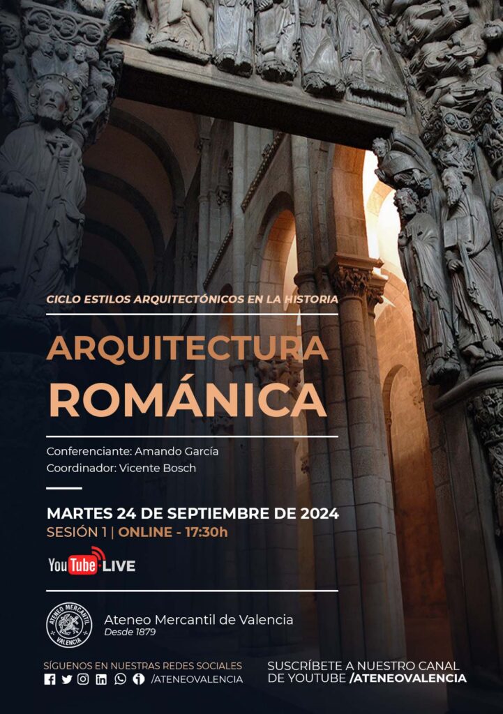 Un nuevo ciclo sobre arte llega al Ateneo Mercantil de Valencia de la mano de D. Amando García. En esta ocasión nos desgranará la evolución de la arquitectura a lo largo de los siglos. En la primera sesión nos hablará sobre Arquitectura Románica, que se desarrolló en Europa Occidental fundamentalmente durante los siglos XI y XII, mucho tiempo después del fin de las civilizaciones griega y romana. La espiritualidad religiosa, la vida monacal y las peregrinaciones a algunos centros espirituales singulares fueron factores muy importantes en el surgimiento de este estilo arquitectónico.