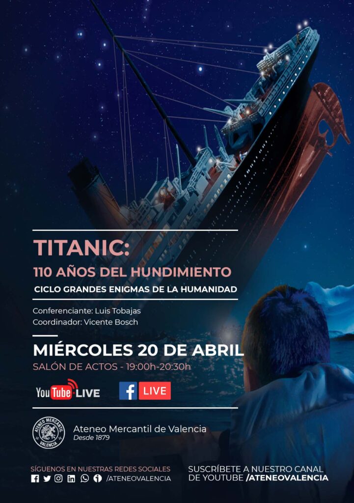 El Ciclo Grandes Enigmas de la Humanidad regresa al Ateneo Mercantil con una conferencia en la que se descubrirán todos los secretos mejor guardados de un barco histórico, quizás el más famoso de la historia, porque a escasos días de su botadura se hundió en las gélidas aguas de Terranova. Estamos hablando del RMS Titanic. Este año se cumple el 110 aniversario de su hundimiento y por ellos el Ateneo Mercantil ha programado esta conferencia para conmemorar aquella tragedia. La historia lo recuerda como el mayor desastre marítimo en tiempos de paz.