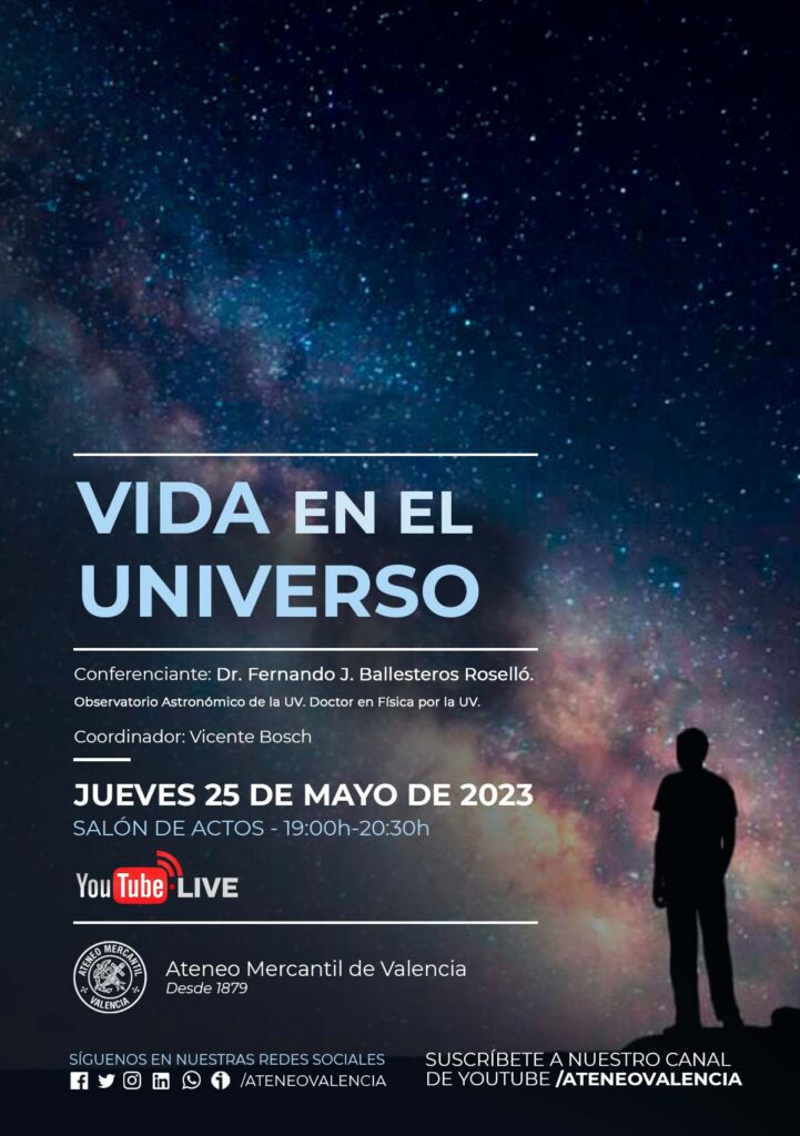 Conferenciante: Prof. Dr. Fernando J. Ballesteros Roselló. Doctor en Física por la UV y jefe de Instrumentación del Observatorio Astronómico de la Universidad de Valencia