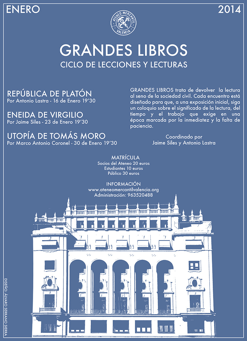 Marco Antonio Coronel hablará del libro ‘La Utopía’ de Tomás Moro. El Ciclo Grandes Libros nace con la ilusión de compartir esos mundos particulares que cada uno de nosotros dibujamos en nuestra mente, haciéndolo además, en presencia de grandes aficionados a la lectura.