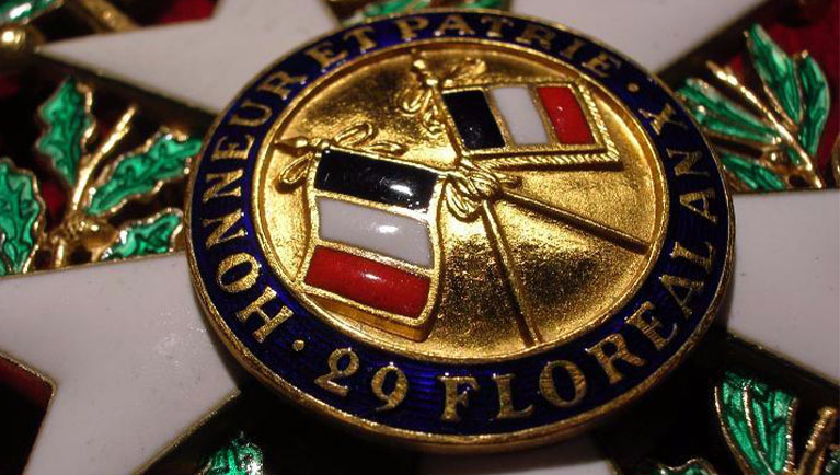 La Orden Nacional de la Legión de Honor es la más conocida e importante de las distinciones francesas. Fue establecida por el emperador Napoleón I de Francia en 1804. La orden se concede a hombres y mujeres, ya sean franceses o extranjeros, por méritos extraordinarios realizados dentro del ámbito civil o militar en ese país. Su lema es "Honor y Patria". La Legión de Honor está formada por caballeros, oficiales, comandantes, grandes oficiales y grandes cruces17. Los grandes oficiales y las grandes cruces son dignatarios de la orden. Su rango corresponde a una dignidad y no a un grado.