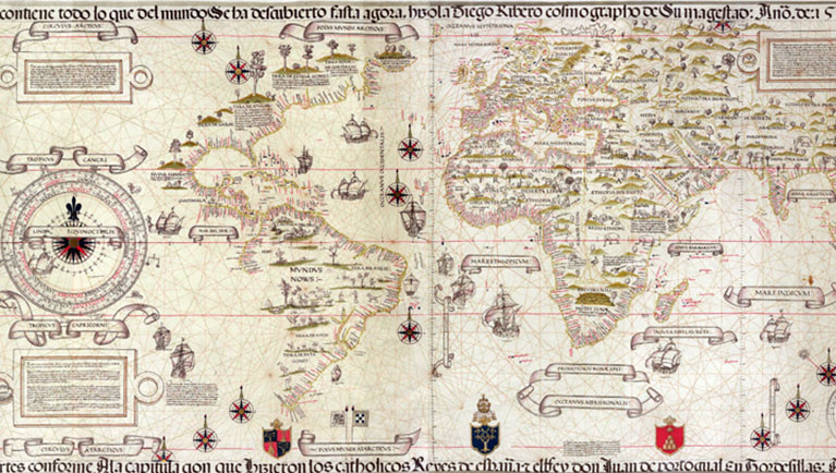La gran hazaña de Magallanes y Elcano fue circunnavegar el mundo entre 1519 y 1522 recorriendo, en muchas ocasiones, un mar desconocido, y tan sólo mirando los astros y aprovechando las corrientes marinas en un momento en el que se estaban "utilizando métodos geométricos elementales para llevar a cabo levantamientos topográficos, así como la de la astronomía para la determinación de posiciones sobre la superficie terrestre"… La calidad artística, se combina con elementos de obras anteriores: cartas náuticas o portulanos, mapas de Ptolomeo y miniaturas flamencas, todas ellas conocidas en el ambiente en el que se inicia la intrépida gesta.