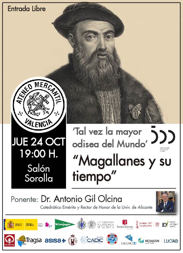 Arranca el Ciclo 'Tal vez la mayor odisea del Mundo' que conmemora el V Centenario de la primera vuelta al mundo que la expedición marítima Magallanes y Elcano dieron alrededor de la tierra. Ellos sin saberlo completaron la primera circunnavegación a la tierra de toda la historia y desmostraron que la tierra era redonda. La expedición de Magallanes y Elcano fue financiada por la Corona española y capitaneada por Fernando de Magallanes en el s. XVI. Esta expedición regresó a España al mando de Juan Sebastián Elcano tras la muerte de Magallanes. En esta primera conferencia conoceremos de cerca la figura de Magallanes en el contexto histórico y el ponente será el Dr. Antonio Gil Olcina que es Rector de Honor y Catedrático Emérito de la Universidad de Alicante.