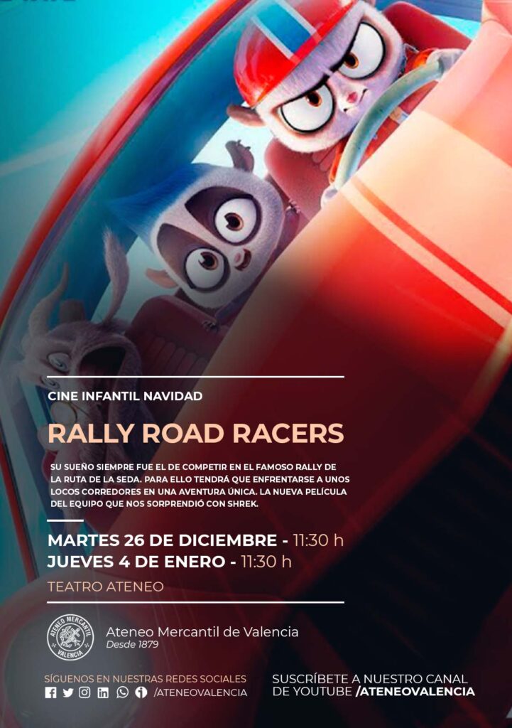 La segunda de la películas infantiles que se proyectara este año en el Ateneo Mercantil para los niños de nuestros socios ha sido "Rally Road Racers". Así, el martes 26 de diciembre en horario matinal, a las 11.30 horas, en el Teatro Ateneo tienes una cita con el mejor cine de dibujos animados. Se proyectará esta película animada dirigida por Ross Venokur. Una película de Kintop Pictures, Riverstone Pictures y Vanguard Animation Production y producida por los creadores de Shrek. Se estrenó en cines el pasado mes de julio de 2023.
