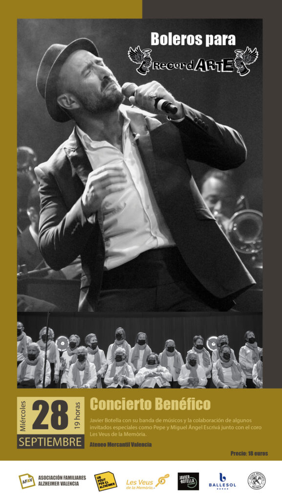 Concierto benéfico "Boleros para recordARTE", organizado por la Asociación de Familiares de Alzheimer de Valencia (AFAV), con motivo del Día Mundial de Alzheimer, con la colaboración de Javier Botella y su banda de músicos y algunos invitados especiales como Pepe y Miguel Ángel Escrivá.