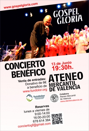 Este día tendrá lugar la actuación del grupo Góspel Gloria a beneficio de Fundolor, Fundación de la Comunidad Valenciana para el Estudio y Tratamiento del Dolor. Góspel Gloria está formado por miembros de diferentes Iglesias Evangélicas de la Comunidad Valenciana. Se trata de una asociación, sin ánimo de lucro, que se formó en el año 1993 con el fin de dar a conocer el enorme legado musical de la música Gospel y los Cantos Espirituales Negros.