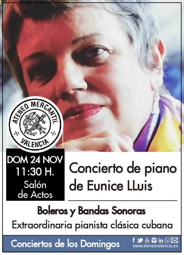 Una vez acabada la Exposición de Van Gogh en la tercera planta regresan los Conciertos de los Domingos a nuestra casa. El primer recital que servirá de Apertura de la Temporada 2019-2020 llegará este domingo 24 de noviembre a las 11.30 horas en el Salón de Actos y desfilará la cubana, Eunice Lluis, una pianista clásica, que ha interpretado a Chopin, Mozart, y Rachmaninoff, entre otros, y ahora nos ofrece su versión de boleros y músicas de cine.