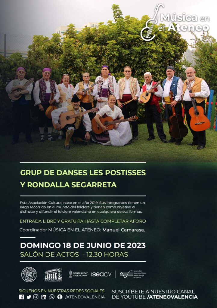 El Grup de Danses Les Postisses junto con su Rondalla Segarreta nació como Asociación Cultural en diciembre de 2019. Gran parte de sus componentes tienen un largo recorrido en el mundo del folclore y llegan al grupo de aquí y de allá. Lo forman alrededor de 40 personas todas con la misma finalidad: disfrutar y difundir el folclore valenciano en cualquiera de sus formas, ya sea con sus bailes, con su indumentaria o con la música, utilizando instrumentos como la guitarra, el laud, la bandurria y algunos no tan conocidos como ahora el requinto o la caña.