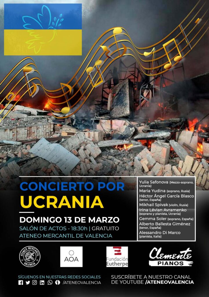 La Fundación Eutherpe, en su vocación por difundir la cultura musical y promocional la carrera de jóvenes talentos de la interpretación, impulsa en colaboración con Amics de L’òpera y de Les Arts de la Comunitat Valenciana y Clemente Pianos la iniciativa de un grupo de músicos y cantantes ucranianos y rusos residentes en la Comunitat Valenciana, para la realización de un Concierto por Ucrania que evidencie lo injusto y terrible de esta guerra. La asistencia al concierto será gratuita.