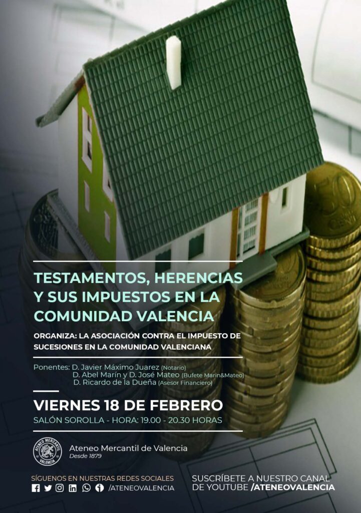 El Ateneo Mercantil de Valencia junto a la Asociación Contra el Impuesto de Sucesiones en la Comunidad Valenciana programa esta conferencia con el fin de ampliar los conocimientos de la Sociedad Civil sobre estos aspectos que tienen relación directa con el herencias e impuestos, cumpliendo con ello uno de los objetivos de la Asociación.