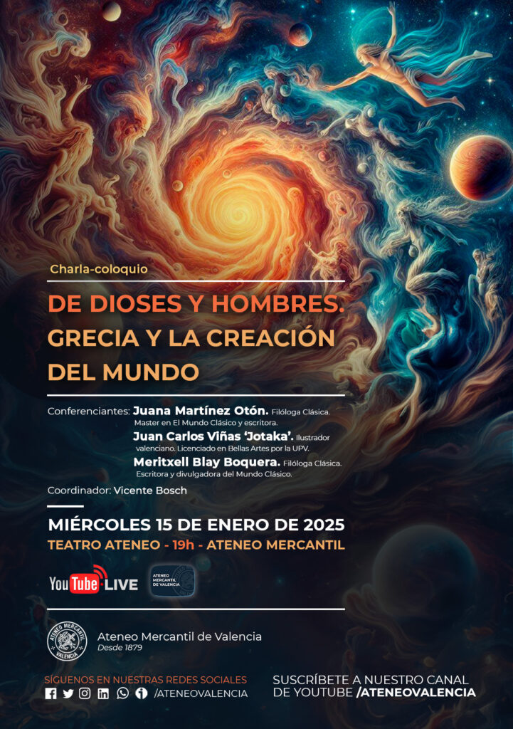 Llega la segunda parte de la conferencia sobre Mitología Griega que se impartió el pasado 2 de diciembre "Cómo se construyen los mitos. Cuentos, leyendas y oralidad". En esta ocasión se hablará sobre Dioses y Hombres y la creación del Mundo en la Mitología Griega. Todos hemos oído hablar de Afrodita, Hermes, Poseidón, Apolo, Artemisa, Zeus...