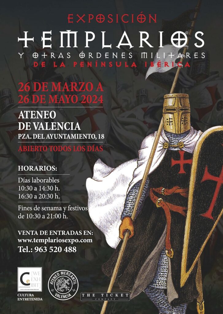 La exposición "Templarios y Otras Órdenes Militares de la Península Ibérica" llega a Valencia ampliada, después de triunfar en ciudades emblemáticas como Peñíscola, Logroño, Toledo, Comillas y Gijón, donde fue visitada por más de 300.000 personas. Organizada por Cultura Entretenida, en colaboración con SCRINIUM y el Archivo Secreto del Vaticano, la exposición estará abierta al público desde el 26 de marzo al 26 de mayo, en el Salón Noble del Ateneo Mercantil de Valencia.