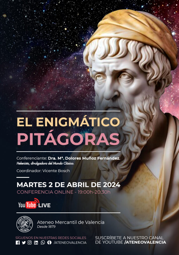 La conferencia, dado que es un tema muy amplio y ciertamente controvertido, se centrará en los aspectos más característicos de Pitágoras, que fue el primero en llamarse a sí mismo filósofo y que configuró en torno a su persona y a sus enseñanzas toda una forma de concebir el universo, la ciencia y el ser humano que tendría una influencia indiscutible en el mundo occidental posterior.