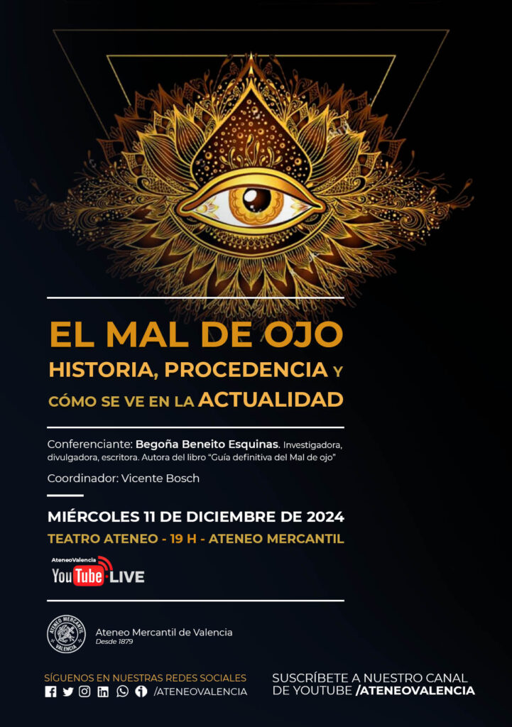 Conferenciante: Begoña Beneito Esquinas. Investigadora, divulgadora, escritora. Autora del libro "Guía definitiva del Mal de ojo"