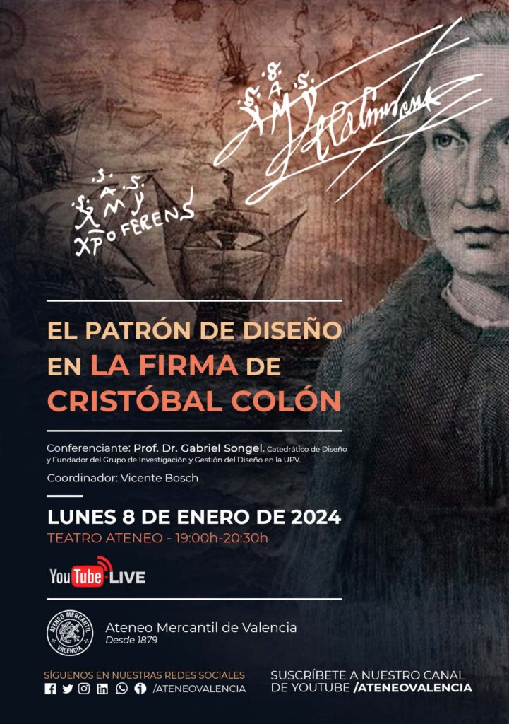 Songel detallará en esta conferencia todo el trabajo realizado desde 2020 sobre la enigmática firma de Cristóbal Colón, un misterio de más de cinco siglos, ya que las letras que la forman no tienen nada que ver con su nombre y estaba especialmente interesado en que se conservara, hasta el punto de que puso su diseño en su testamento. Tras las investigaciones de la UPV, se detectó que la firma se enmarca en una retícula usada por los maestros canteros medievales. Se trata de la retícula conocida como Ad Triangulm recoge en su geometría las claves de la firma de Colón: desde los signos de puntuación, las misteriosas letras y su firma como: Xpo Ferens . /.