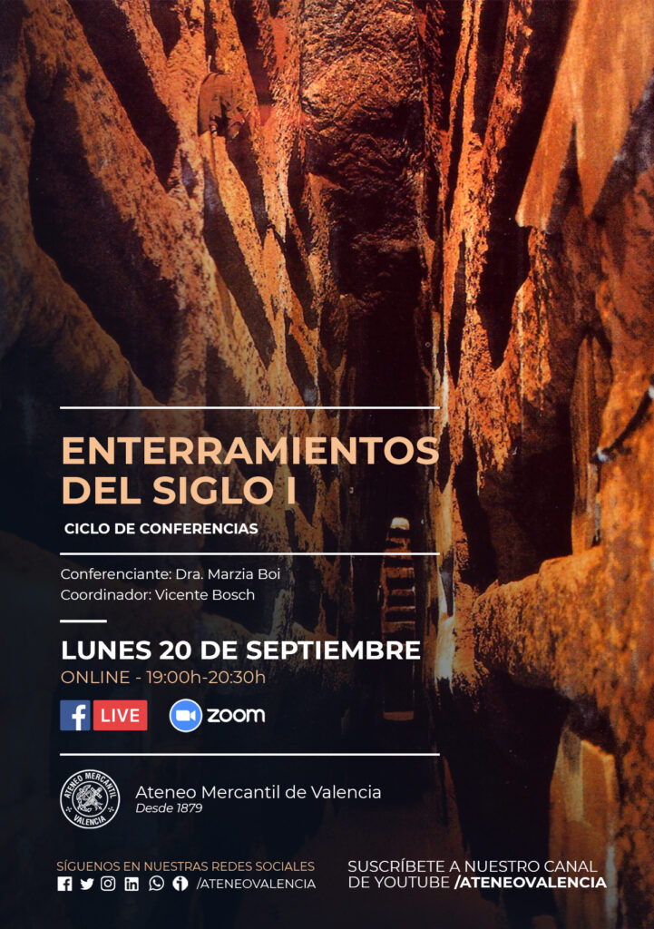 El Ciclo de Conferencias llega al Ateneo Mercantil con una nueva reunión en la que se hablará sobre los enterramientos en la antigüedad tardía. Así el próximo lunes 20 de septiembre llega a las 19 horas una conferencia que será online bajo el título "Enterramientos del siglo I" y la ponente será la palinóloga, doctora en Biología e investigadora, Dª. Marzia Boi.