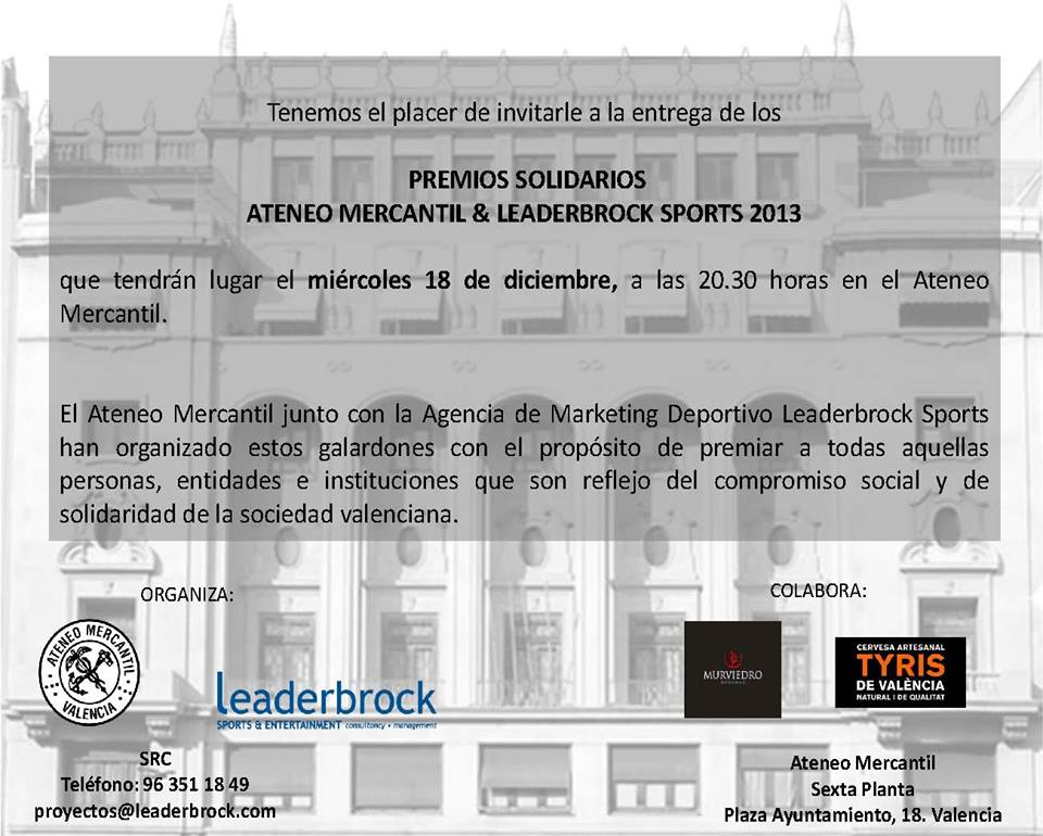 El Ateneo Mercantil de Valencia y la Agencia de Marketing Deportivo Leaderbrock Sports ha organizado estos galardones con el propósito de premiar a personas, entidades e instituciones que son reflejo del compromiso social y de solidaridad, en la sociedad valenciana