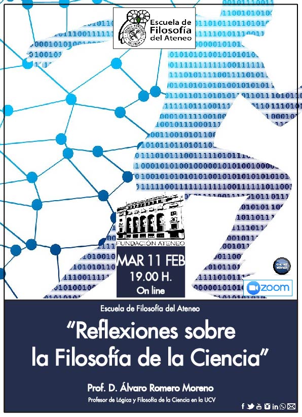 La Escuela de Filosofía ha vuelto a programar una nueva reunión el próximo jueves 11 de febrero a las 19 horas. La conferencia será On line y llega bajo el título "Reflexiones sobre la Filosofía de la Ciencia" y el ponente será el Prof. Álvaro Romero Moreno, que es profesor de Lógica y Filosofía de la Ciencia en la UCV San Vicente Mártir y miembro del Instituto Superior de Enseñanzas Artísticas de la Comunitat Valenciana.