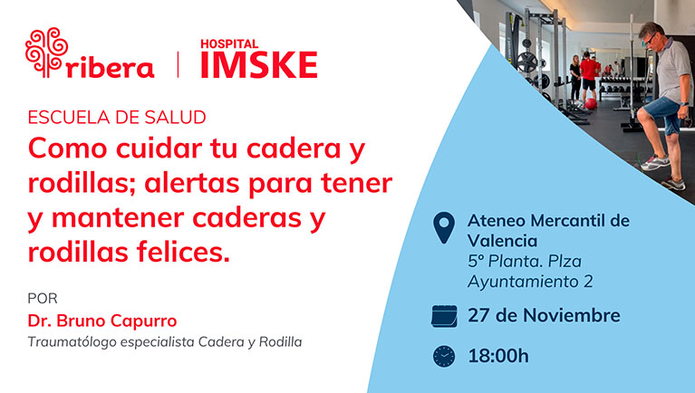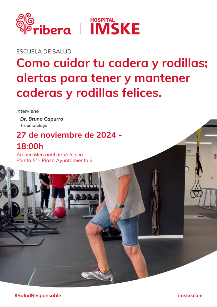 No puedes perderte esta charla con el traumatólogo, el Dr. Bruno Capurro, sobre el cuidado de tus caderas y rodillas. El próximo 27 de noviembre a las 18 h en el Salón Sorolla del Ateneo Mercantil de Valencia podrás descubrir cómo mantener la salud de tus articulaciones para una vida activa y sin dolor. No importa tu edad o nivel de actividad física, esta charla es para todos los que desean cuidar de su cuerpo y mejorar su bienestar. No te pierdas esta oportunidad de mejorar tu bienestar, ¡Tu cuerpo te lo agradecerá!