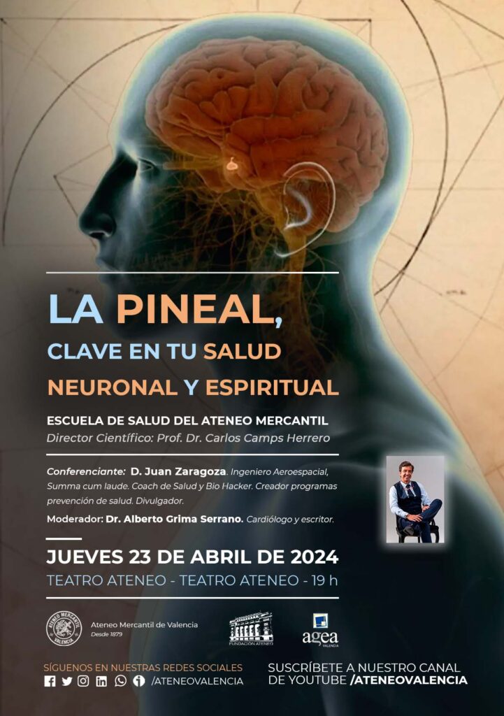 La Fundación del Ateneo Mercantil de la CV organiza una nueva conferencia de la Escuela de Salud junto a Egea Valencia. El invitado es Juan Zaragoza, quien nos descubrirá la importancia de la glándula pineal en nuestra salud, a nivel neuronal y espiritual, así como las claves para su cuidado. La conferencia llega bajo el título "La Pineal, clave en tu salud neuronal y espiritual".