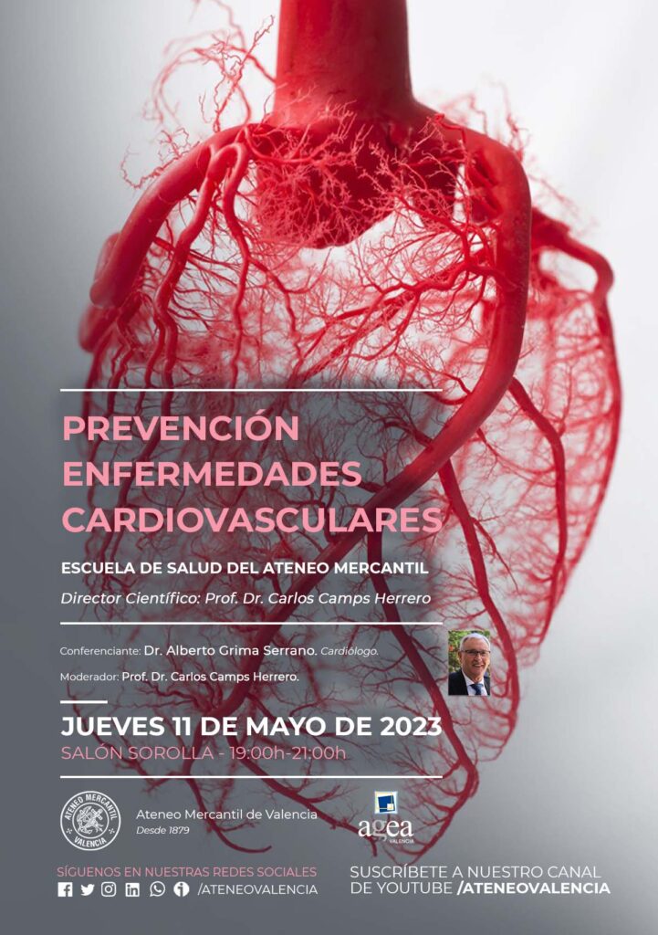El Ateneo Mercantil y la Asociación Grupo de Estudios de Actualidad organizan un nuevo encuentro de la escuela de Salud del Ateneo Mercantil el próximo jueves 11 de mayo en el Ateneo Mercantil bajo el título "Prevención de enfermedades cardiovasculares".