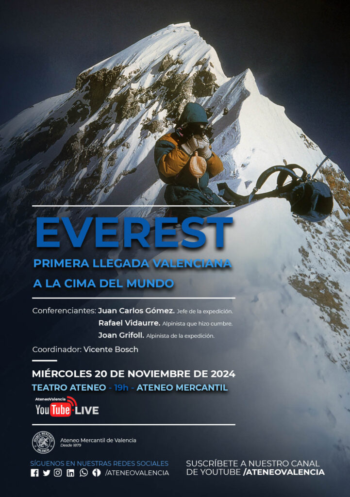 Al final de la conferencia se visualizará un documental inédito (23 min.) que recoge toda la ascensión de la expedición valenciana a la cima del Everest.