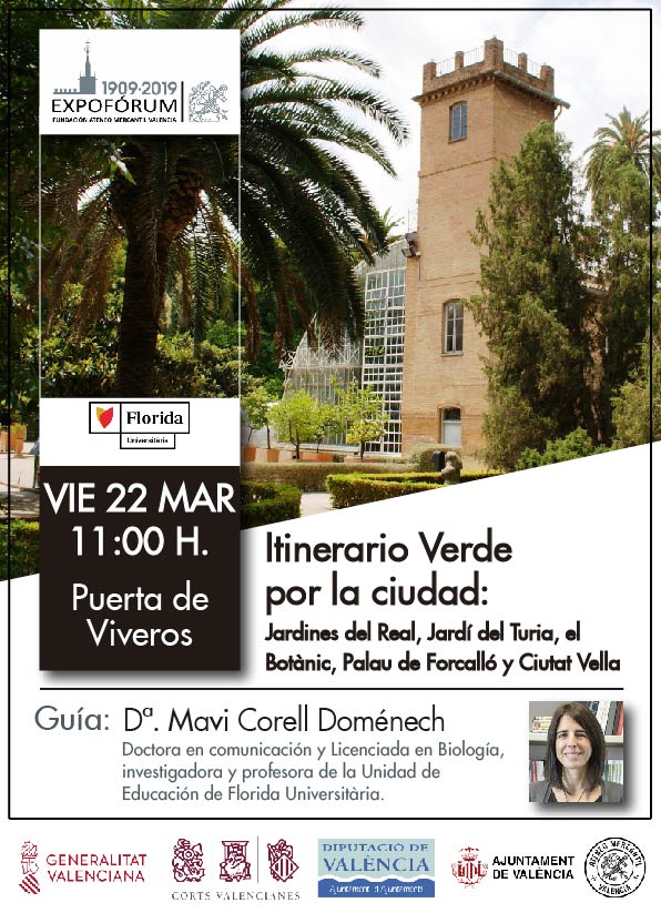 La visita llega con el nombre de "Itinerario Verde por la Ciudad", un recorrido que han diseñado los alumnos de los grados de Educación de Florida Universitaria y que recorrerán tres jardines históricos de Valencia: Jardines del Real, Jardí del Turia y el Botànic, además, de pasar por el Palau de Forcalló y Ciutat Vella. La visita será dirigida por la profesora doctora de la Unidad de Educación de Florida Universitària, Mavi Corell. La visita está organizada por Florida Universitaria.